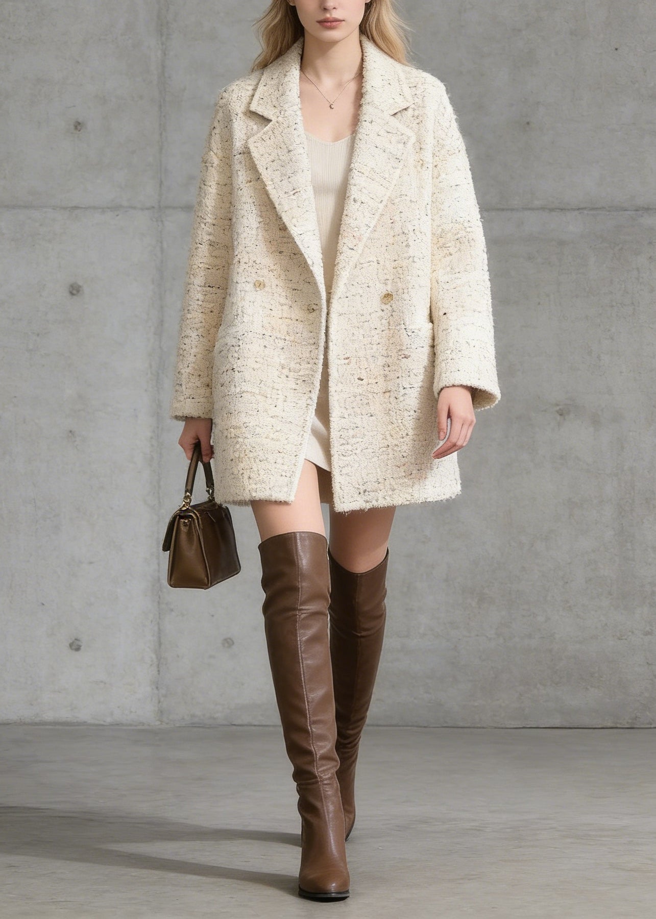French Beige Peter Pan Collar Pockets Woolen Coat Spring - Omychic