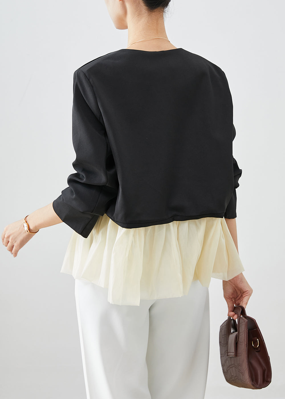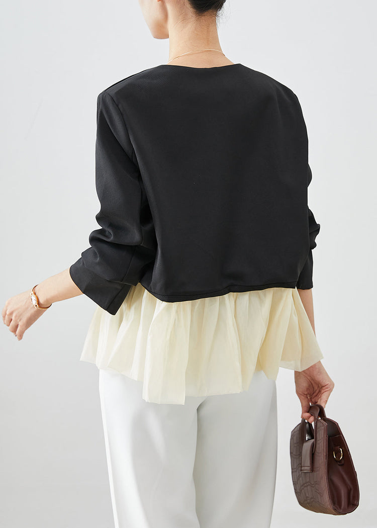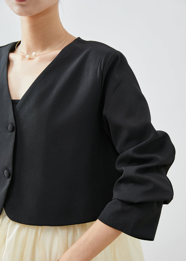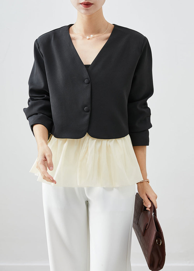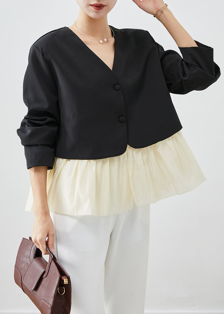 Fashion Black V Neck Patchwork Spandex Coats Fall