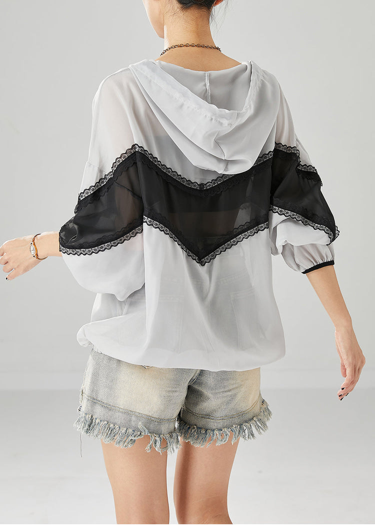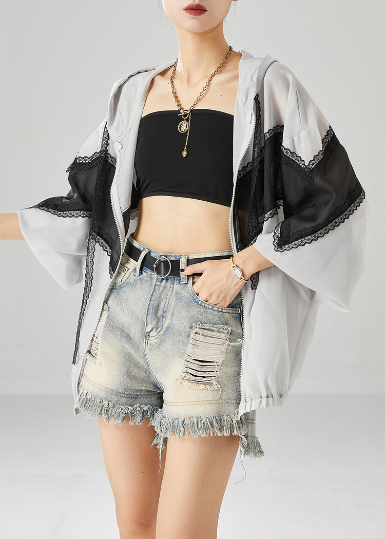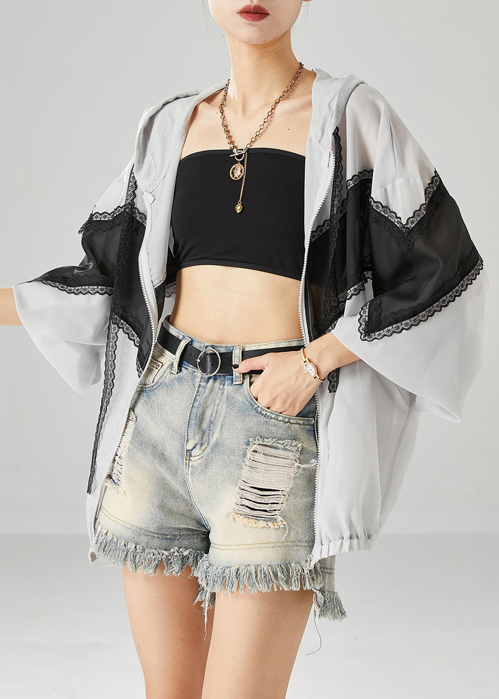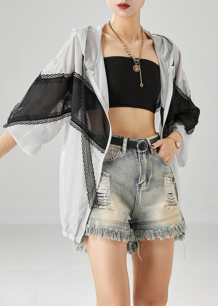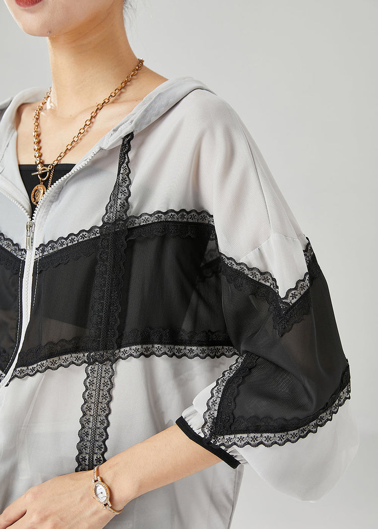 Natural Grey Hooded Patchwork Lace Spandex UPF 50+ Coat Jacket Fall