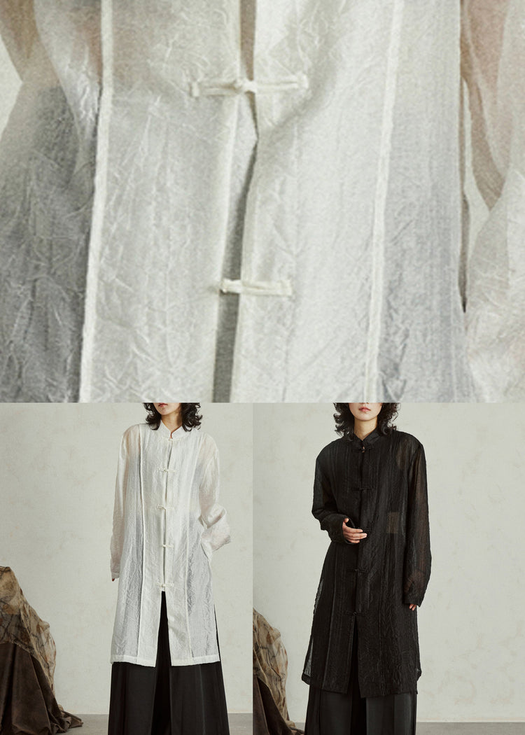 Retro Black Button Organza Long Tops Long Sleeve