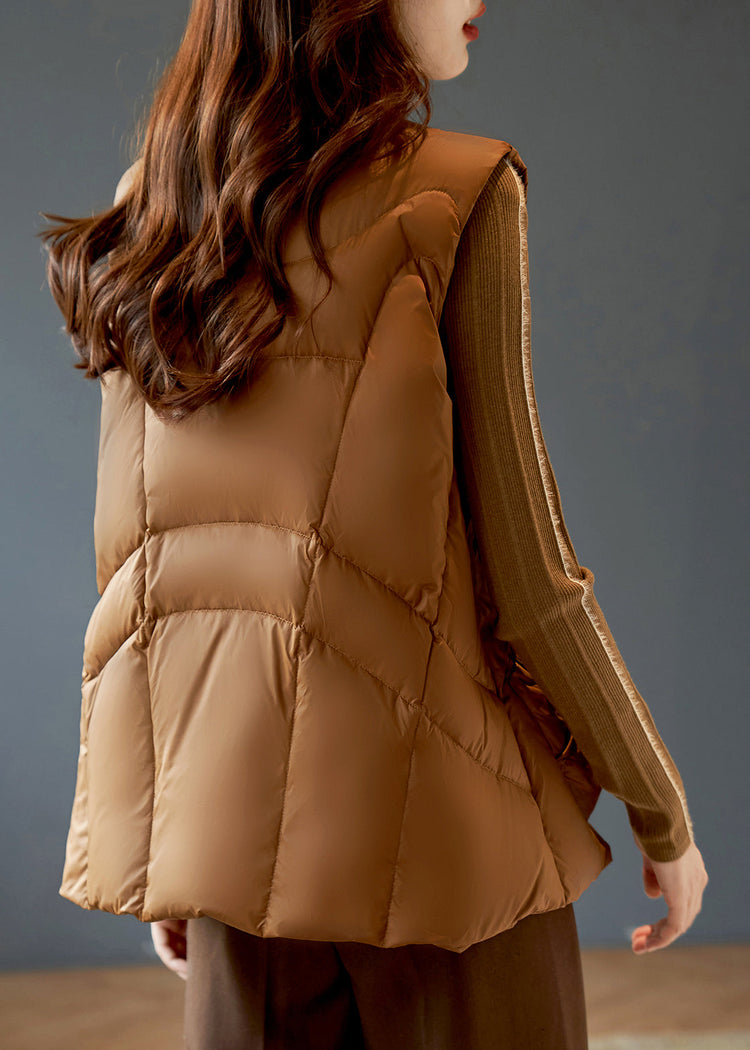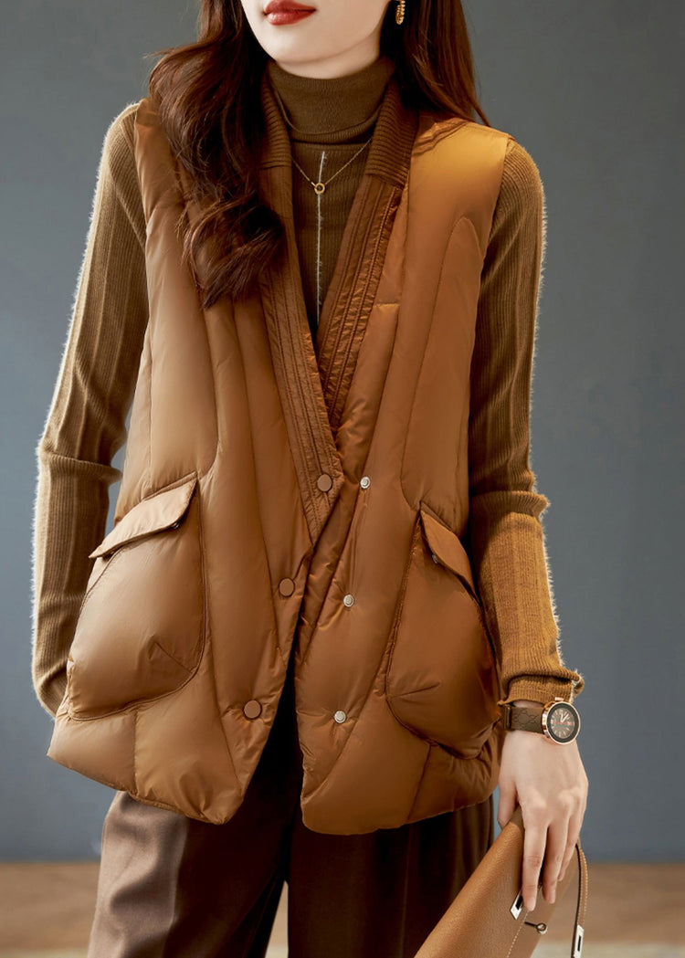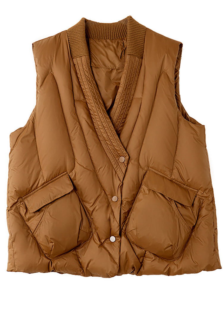 Modern Coffee V Neck Pockets Duck Down Down Vests Winter