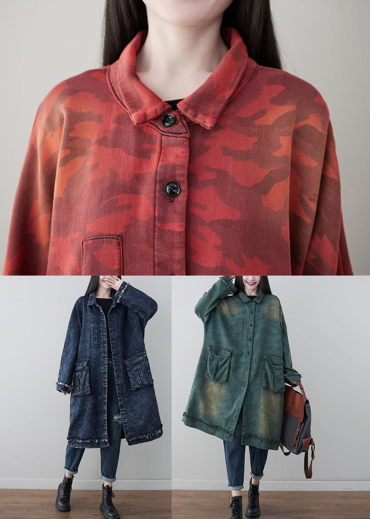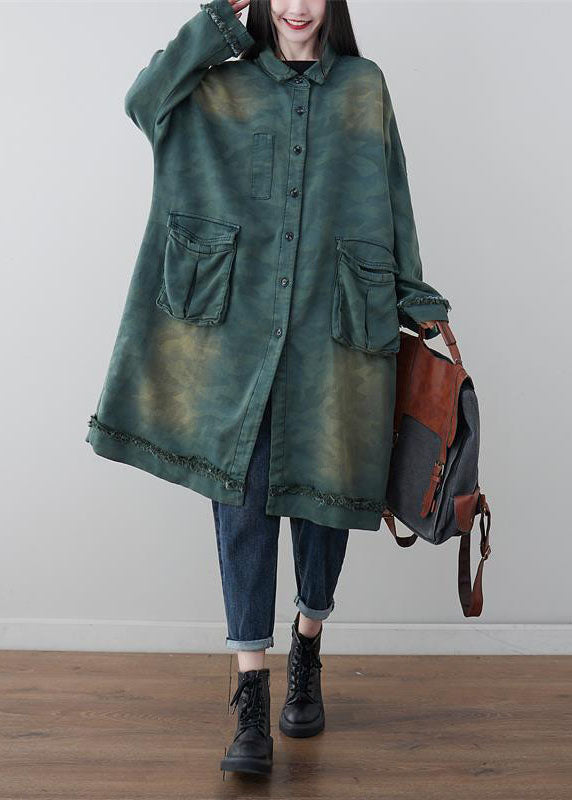 Modern Green Peter Pan Collar Patchwork Camouflage Print Cotton Coat Spring