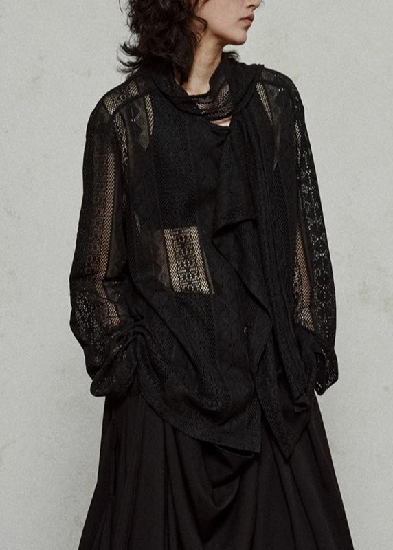 Style Black Bow Cozy Knit UPF 50+ Coat Jacket Fall