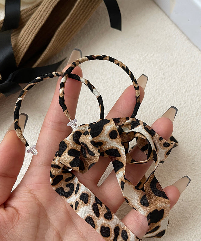 Handmade Leopard Sterling Silver Cloth Leopard Ribbon Drop Earrings
