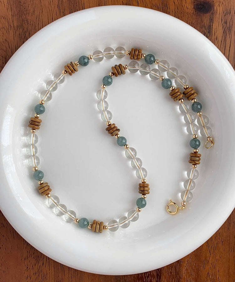 Original Design Alloy Crystal Jade Gratuated Bead Necklace