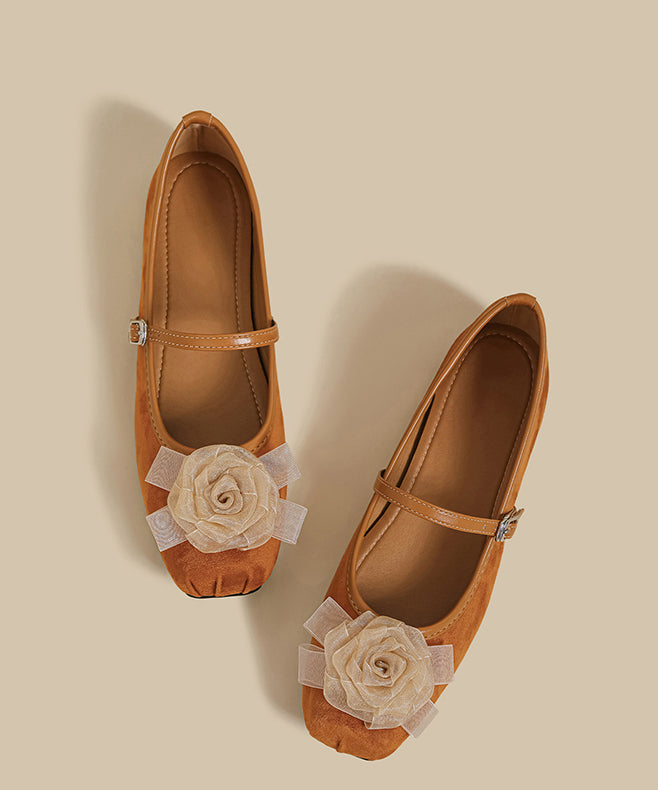 DIY Floral Buckle Strap Splicing Flat Feet Shoes Black Suede
