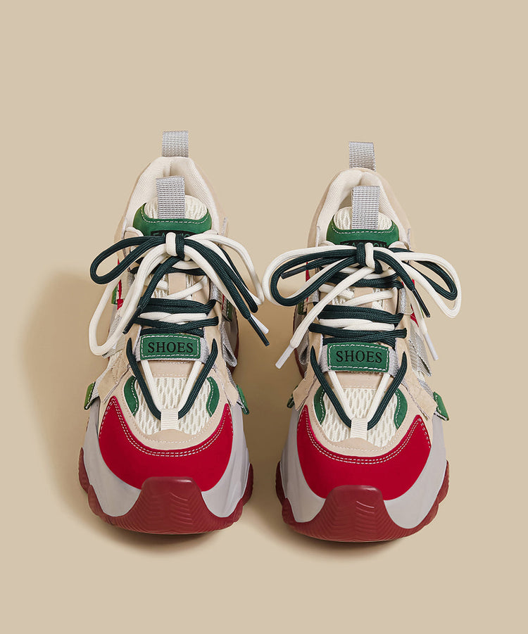 Green Platform Sport Shoes Faux Leather Soft Splicing Breathable Mesh