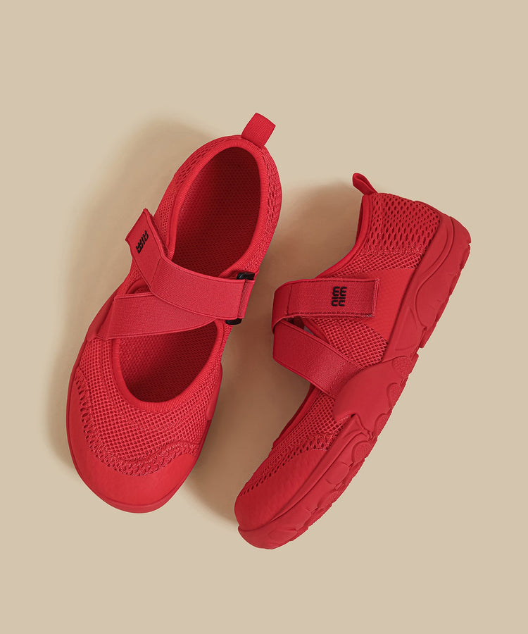 Handmade Splicing Flat Shoes For Women Red Breathable Mesh