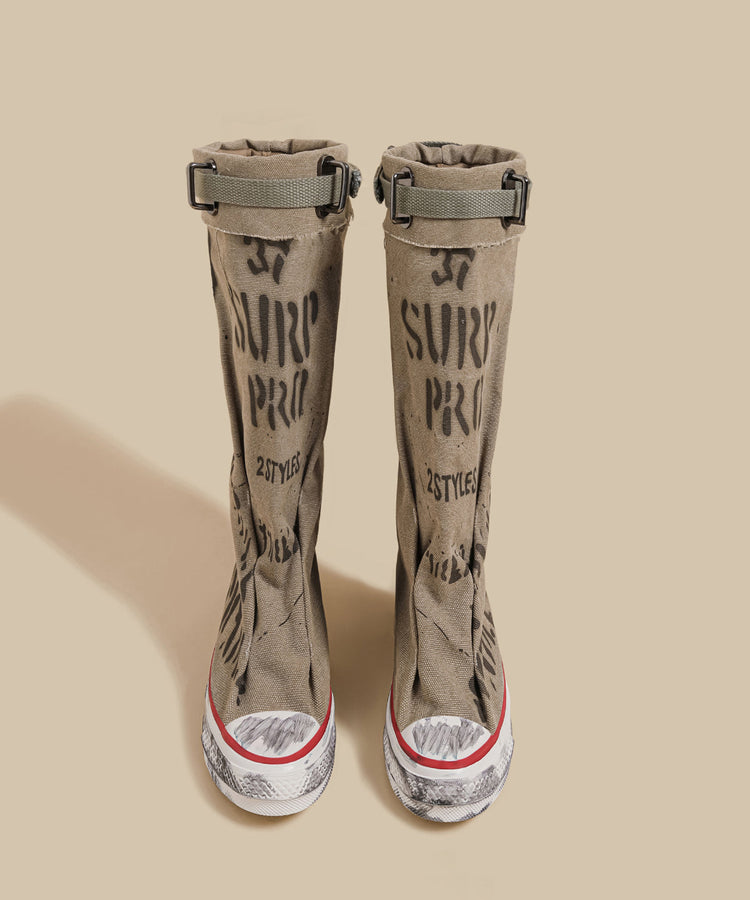 Khaki Canvas Graffiti Splicing Casual Boots