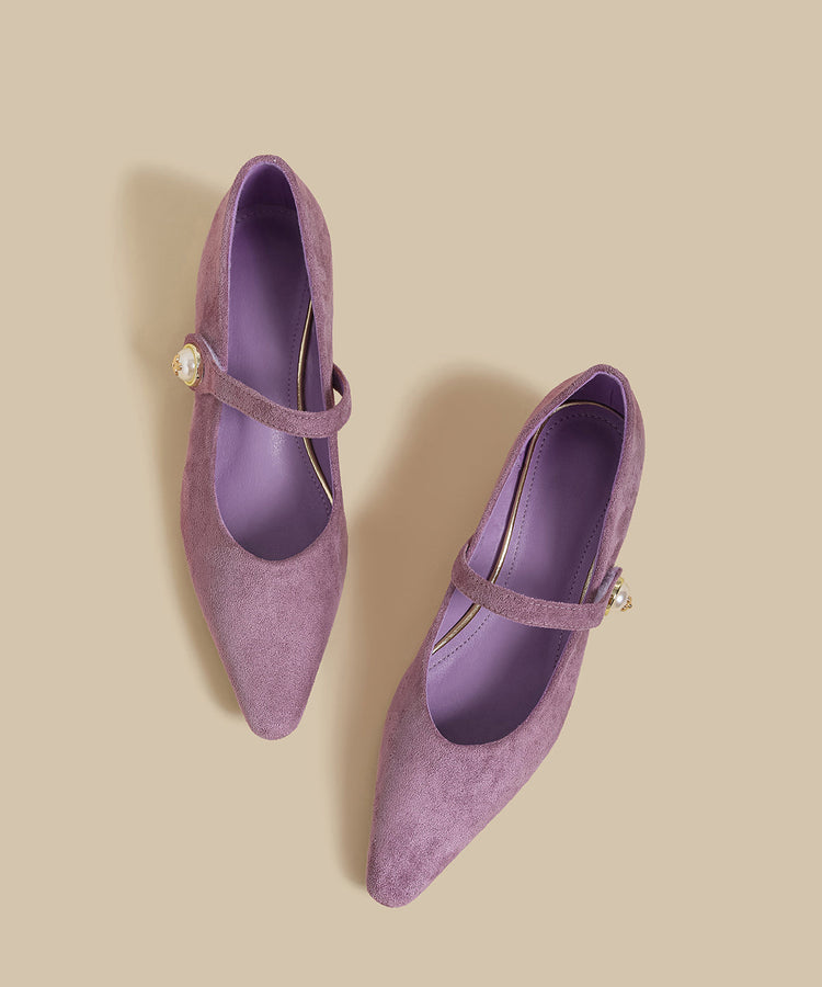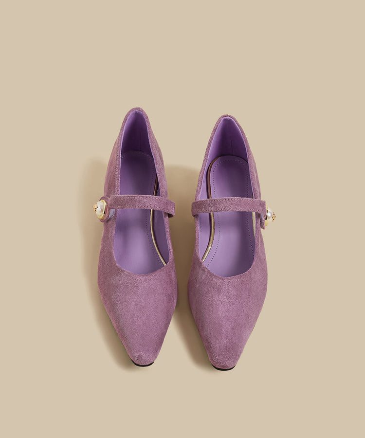 Purple Suede Buckle Strap Splicing Wedge Heels Shoes