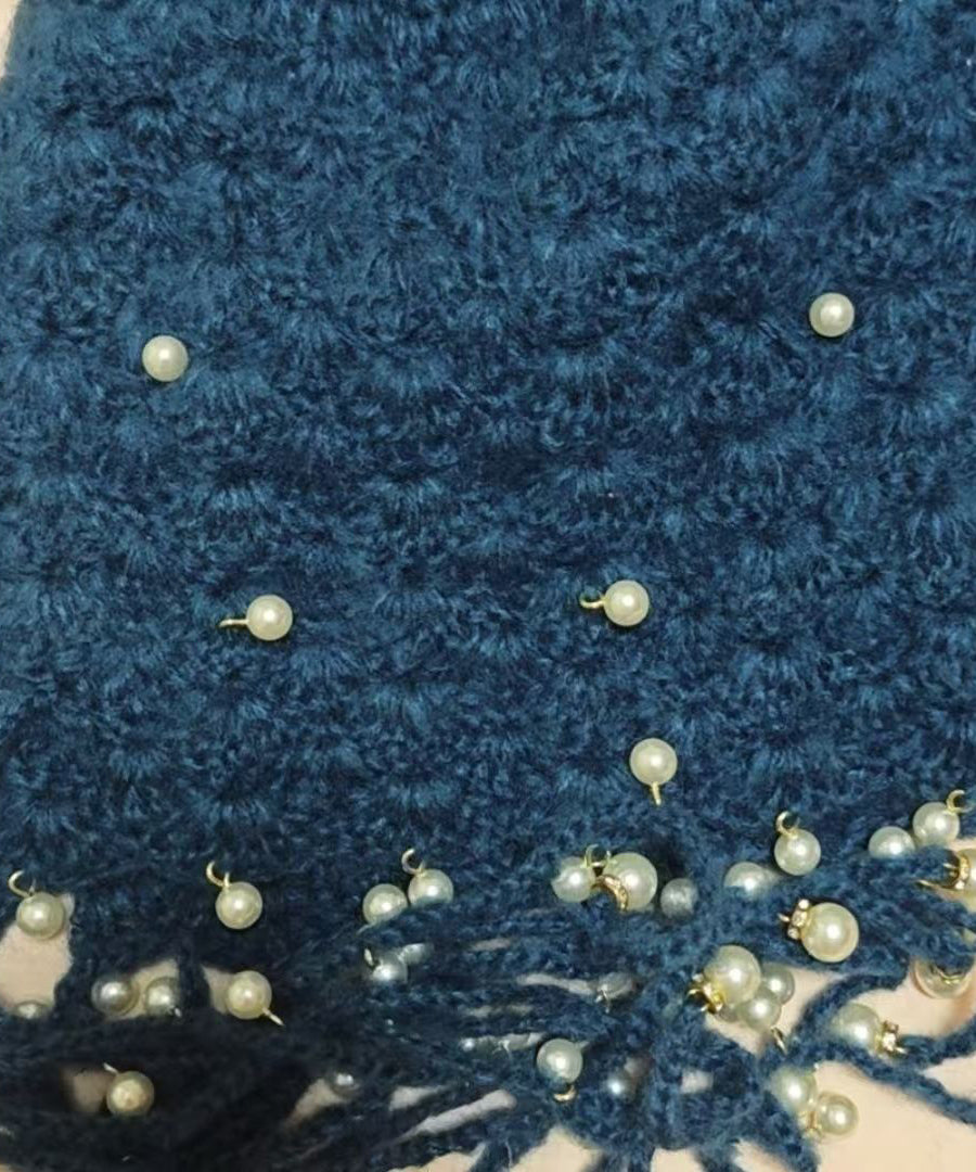 Boho Blue Tassel Nail Bead Knit Bonnie Hat