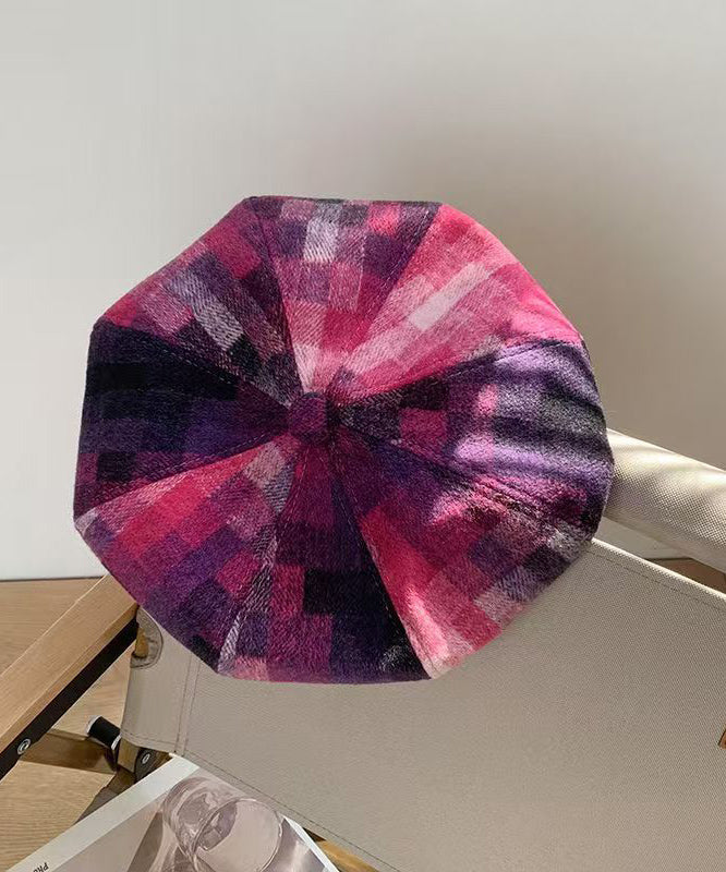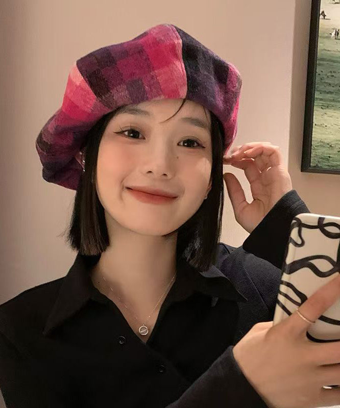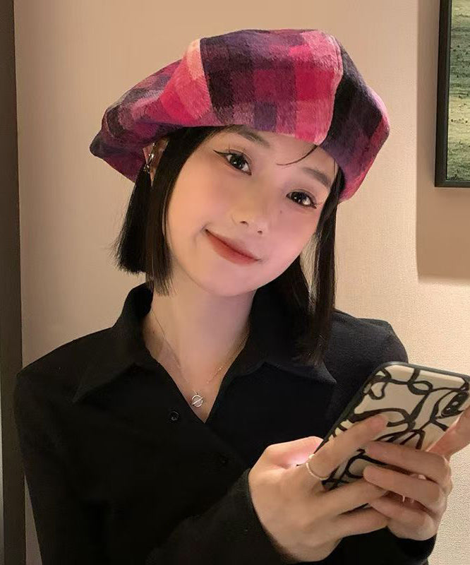 Chic Red Plaid Versatile Woolen Beret Hat