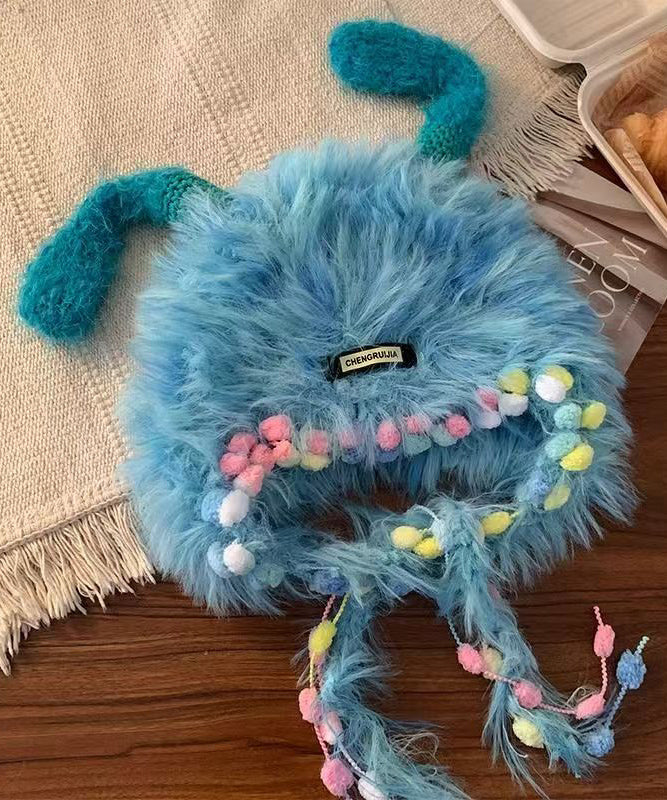 Unique Cute Blue Fuzzy Fur Knit Warm Bonnie Hat