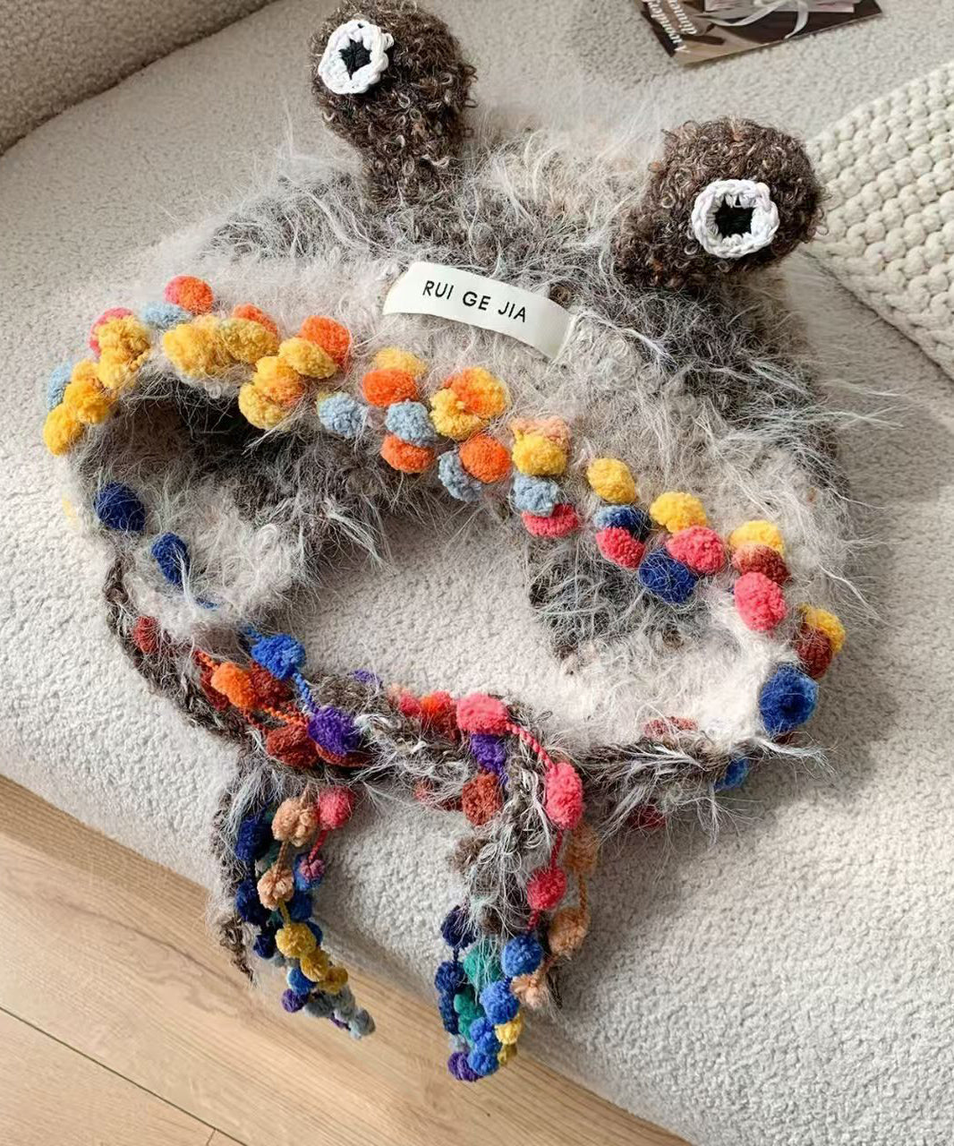 Korean Style Beige Multi Bead Fuzzy Fur Knit Warm Boonie Hat