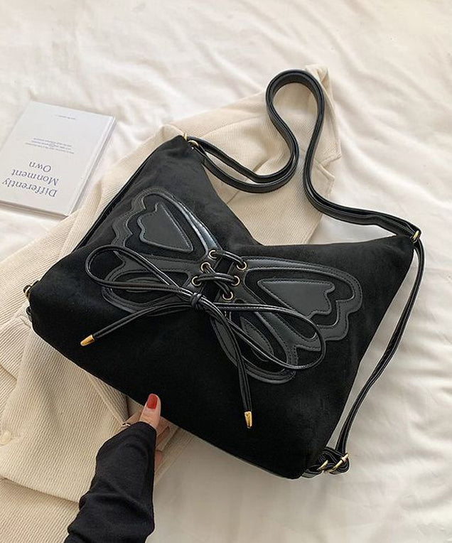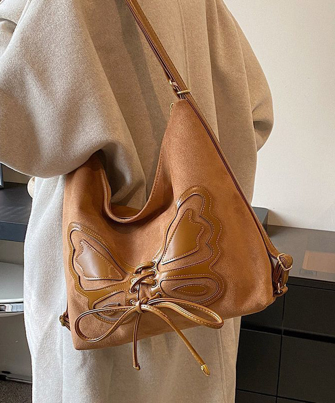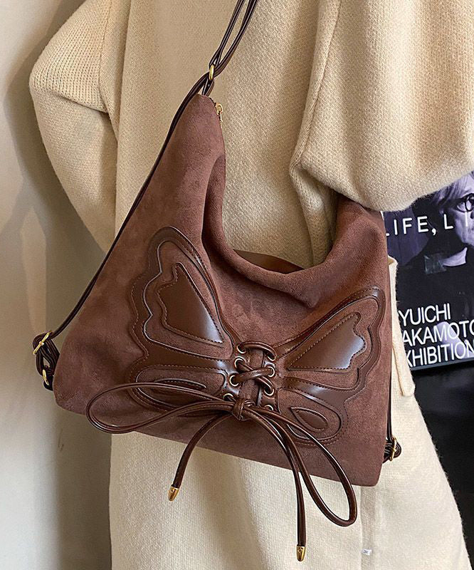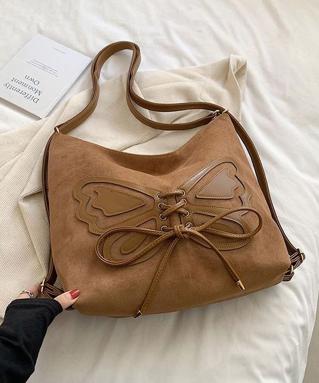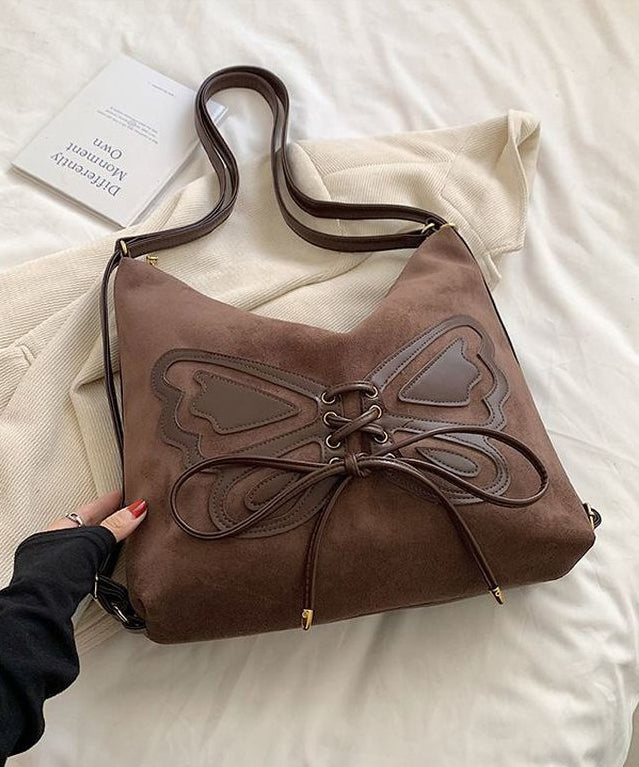 Retro Coffee Butterfly Lace Up Faux Suede Messenger Bag