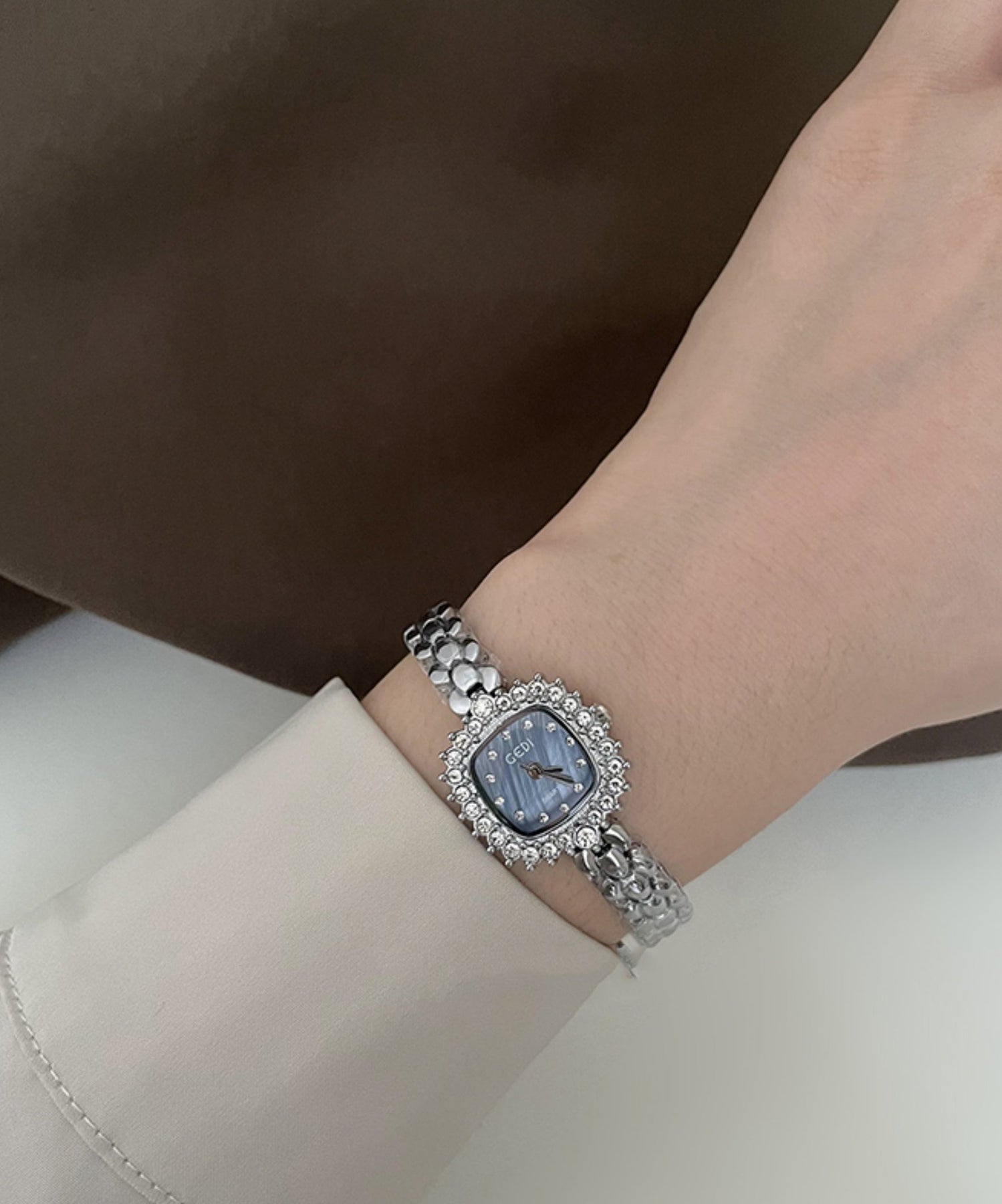 Fine Blue Stainless Steel Tempered Glass Chain Watches