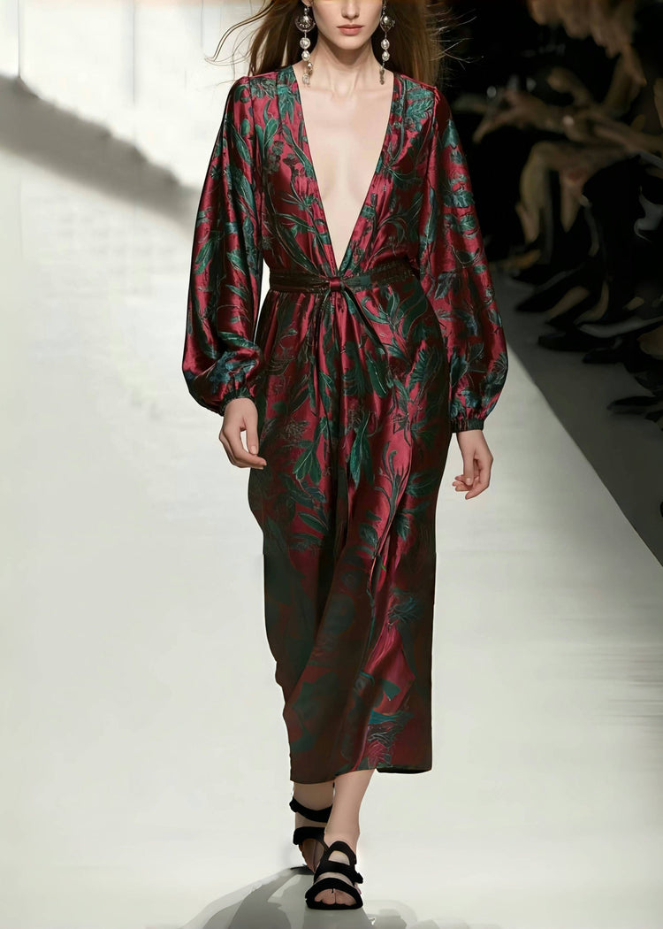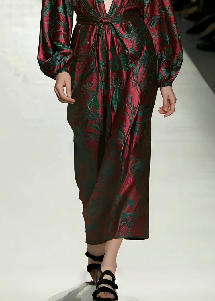 Casual Mulberry V Neck Print Silk Vacation Dresses Spring