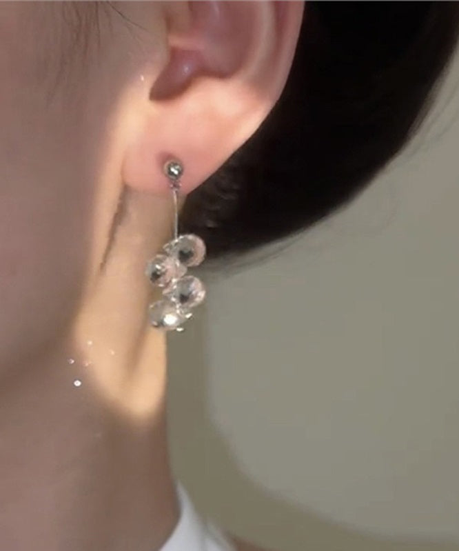 Boho White Sterling Silver Glass Tassel Drop Earrings