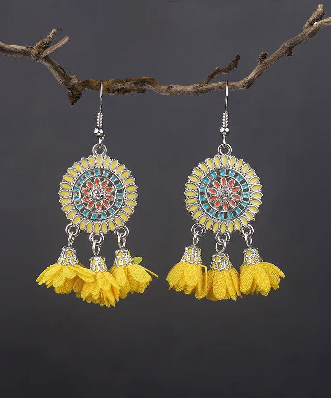 Boho Yellow Sterling Silver Floral Tassel Drop Earrings