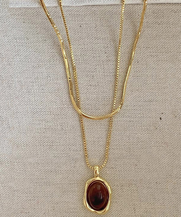 Style Gold Copper Overgild Amber Pendant Necklace Two Piece Set