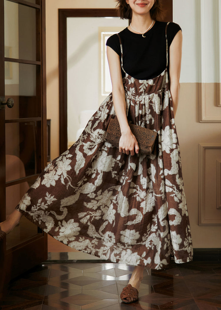 Casual Print Wrinkled Cotton Spaghetti Strap Dress Summer