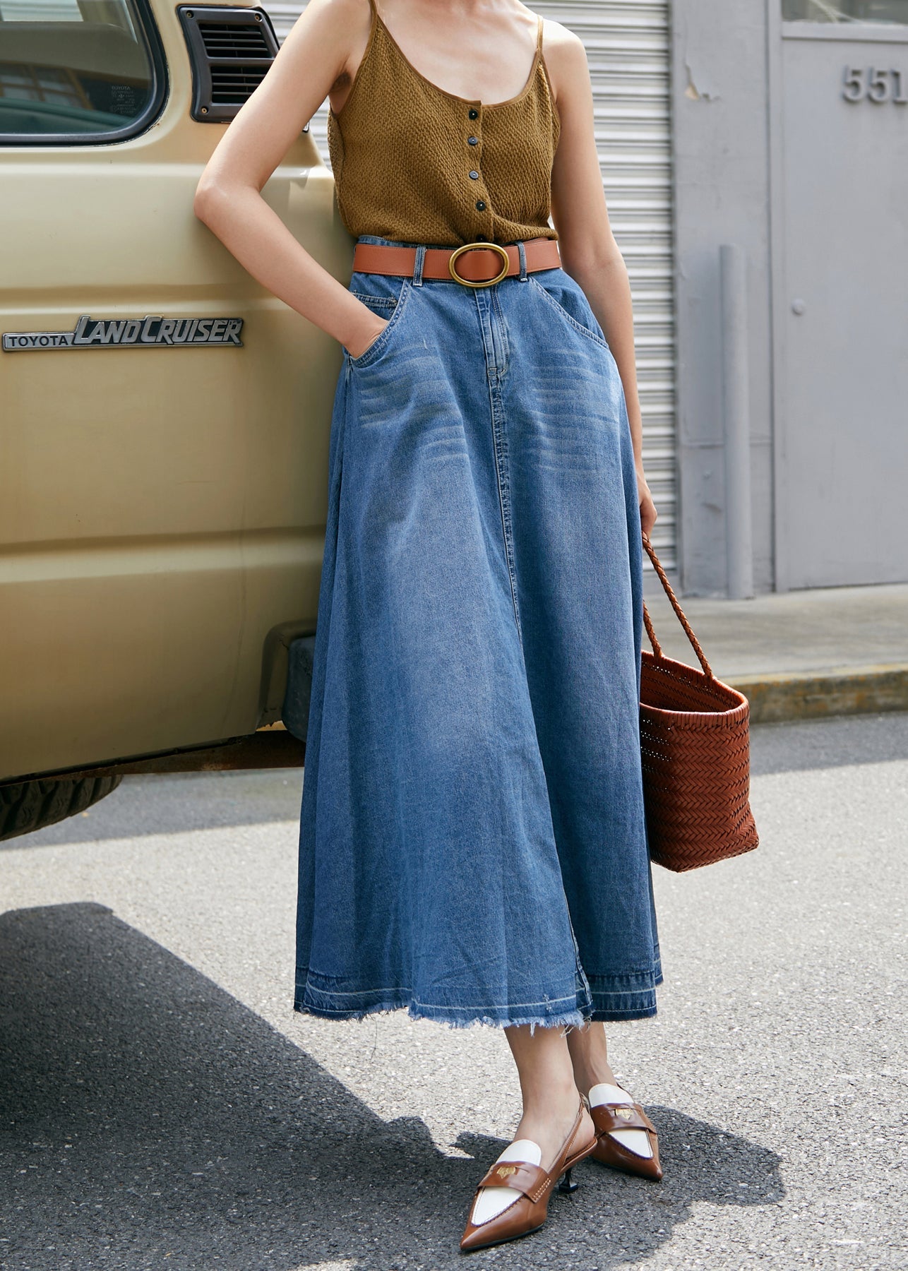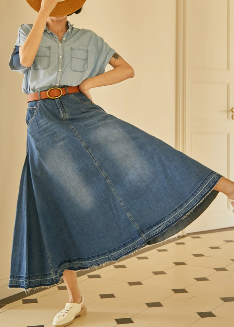 Chic Blue Pockets High Waist Denim Skirt Fall