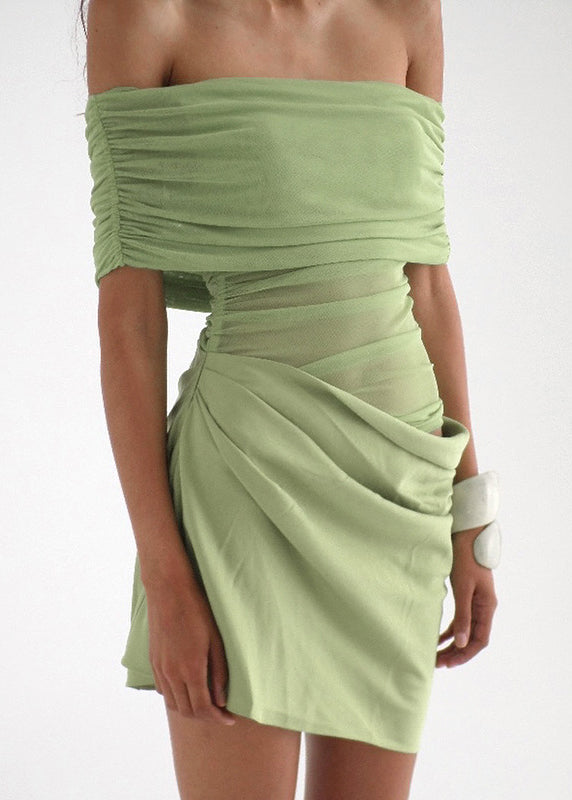 European And American Style Black Slash Neck Tulle Patchwork Mid Dress Summer