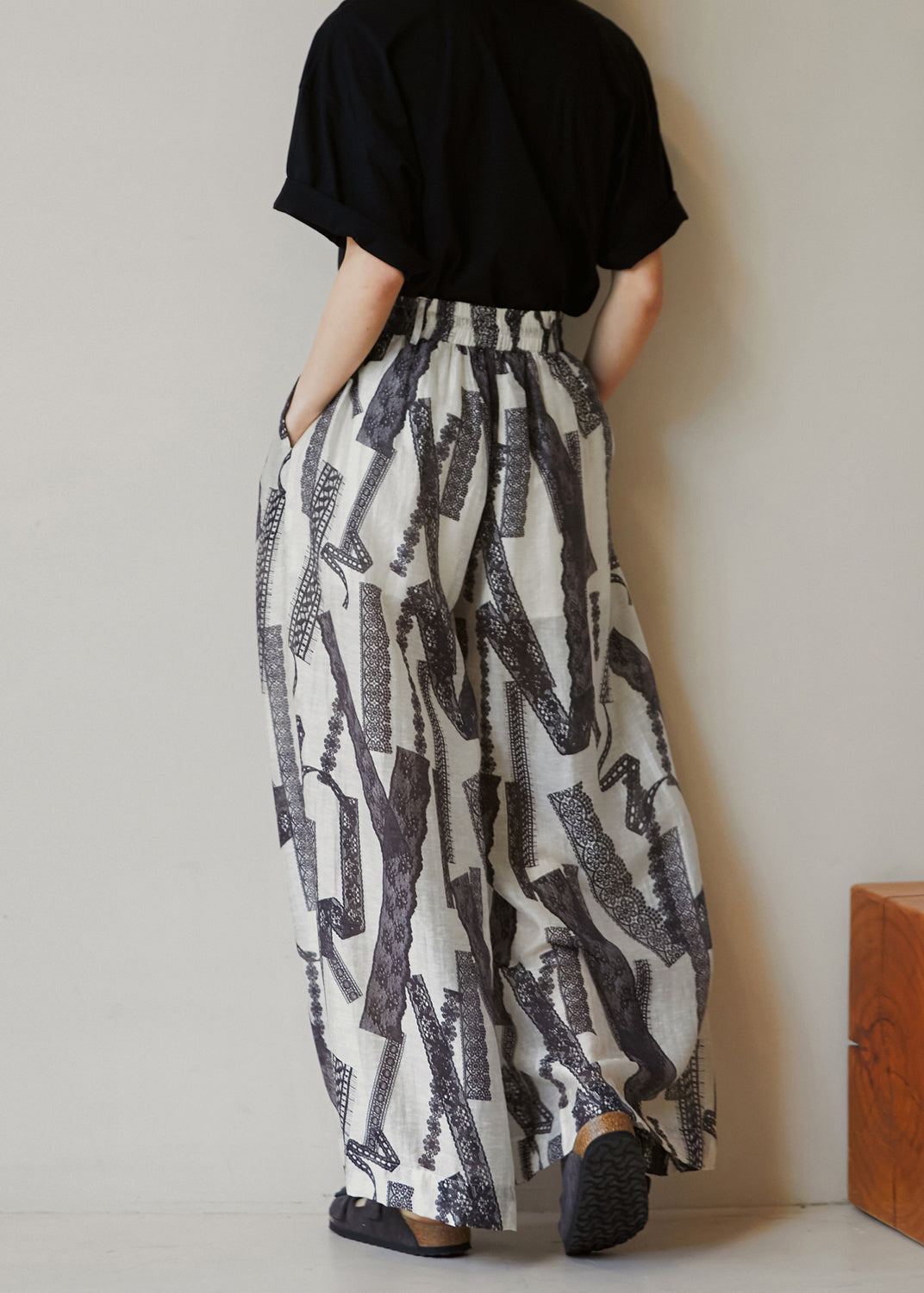 Modern Pockets Print Elastic Waist Cotton Wide Leg Pants Summer