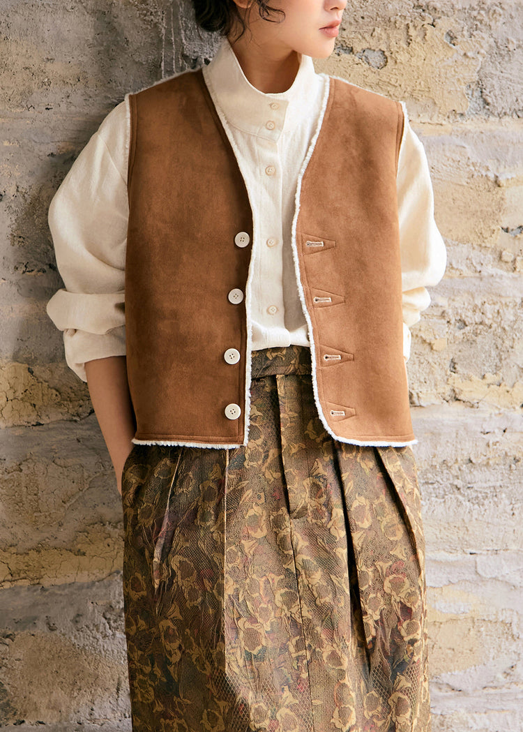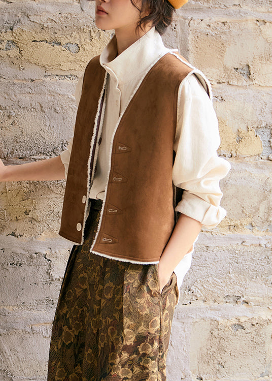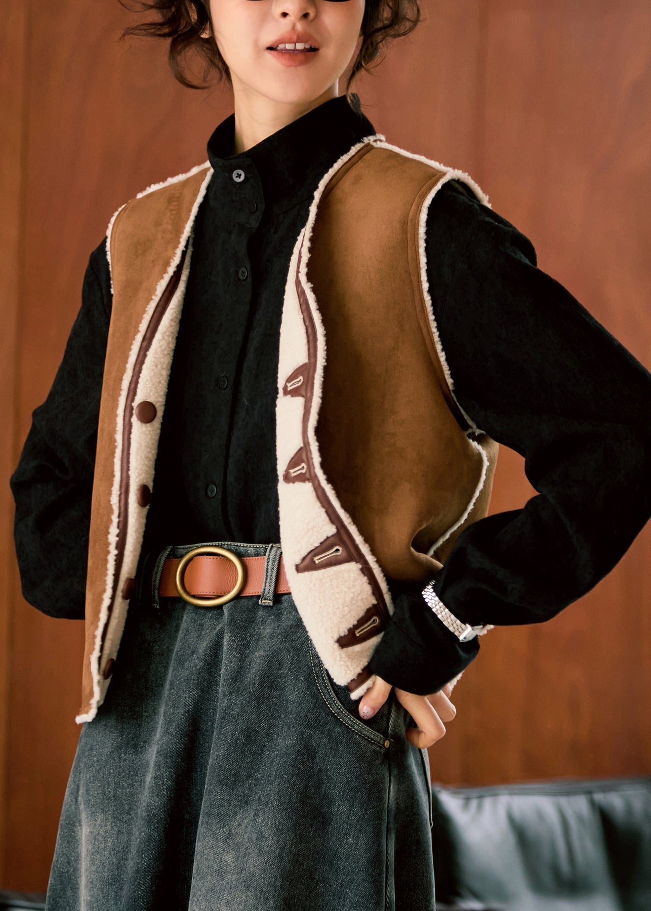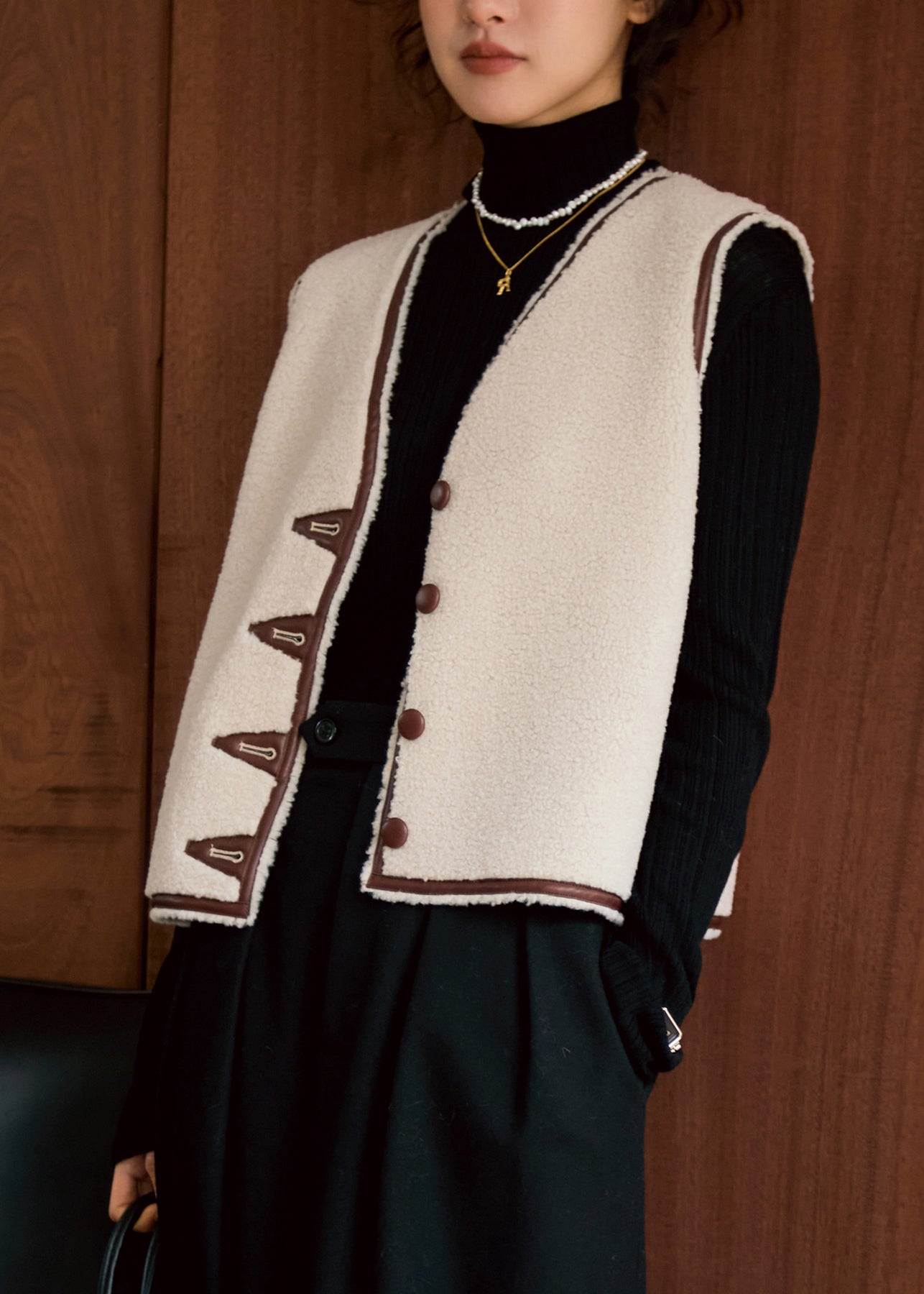 New V Neck Faux Fur Wear On Both Sides Vest Sleeveless