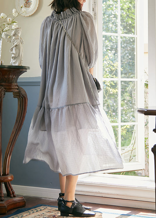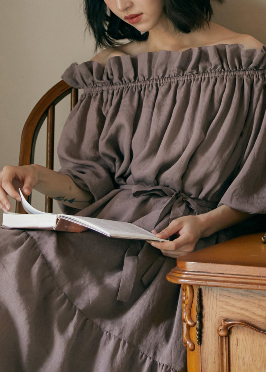 Plus Size Grey Purple Ruffled Lace Up Patchwork Cotton Dress Summer