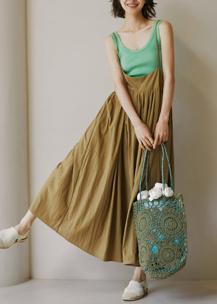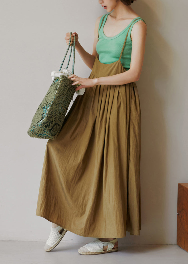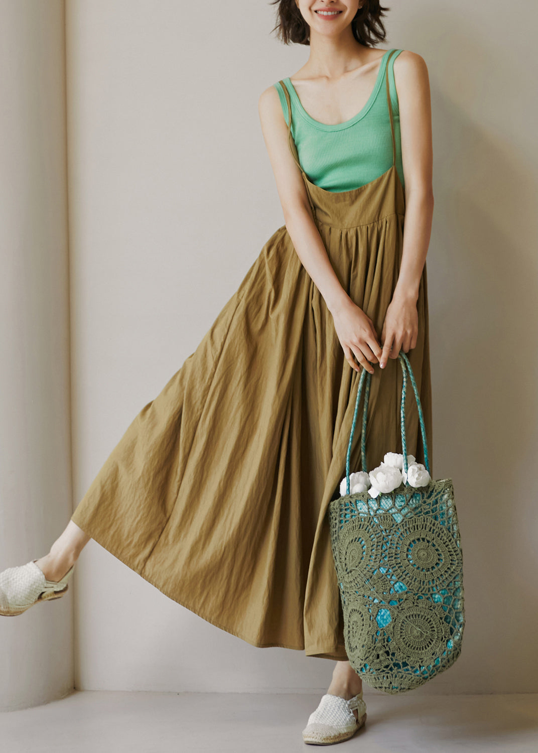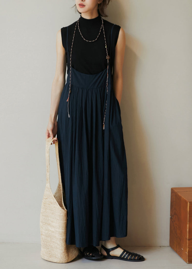 Women Navy Pockets Wrinkled Cotton Spaghetti Strap Dress Summer