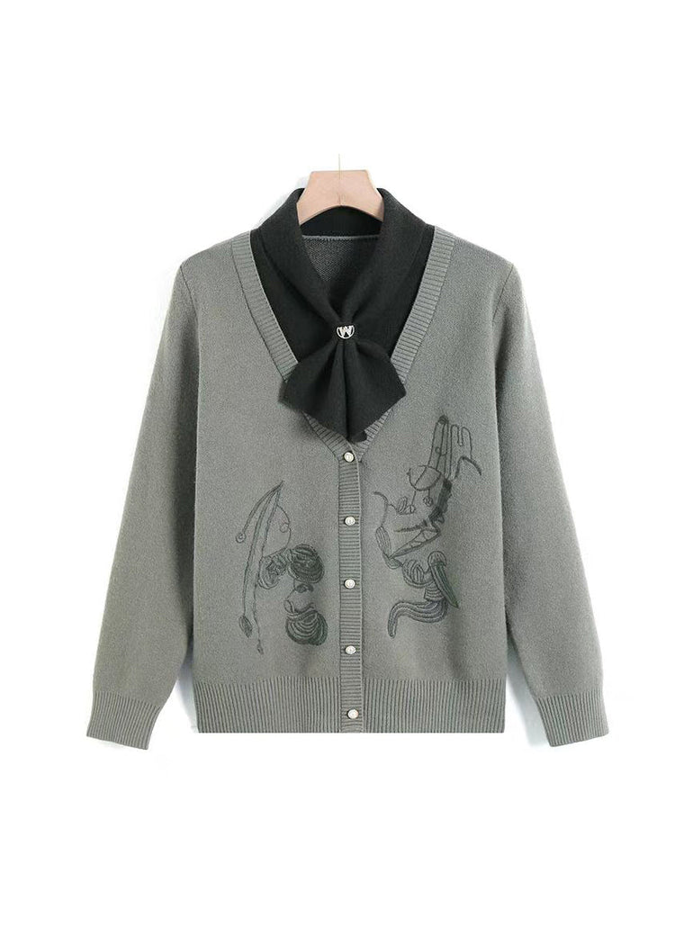 Beautiful Green Bow Patchwork Knit Pullover Spring