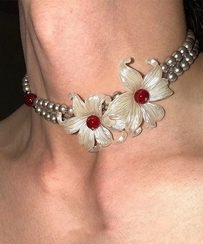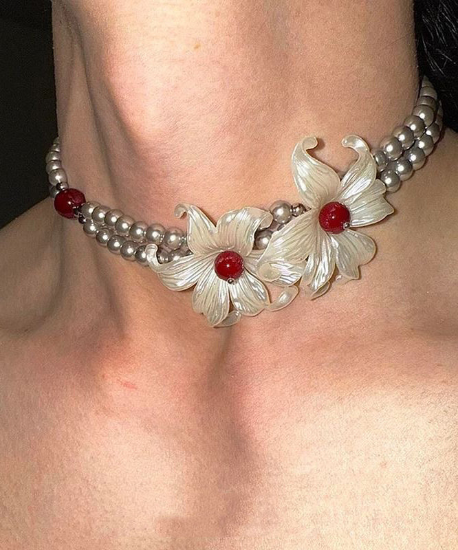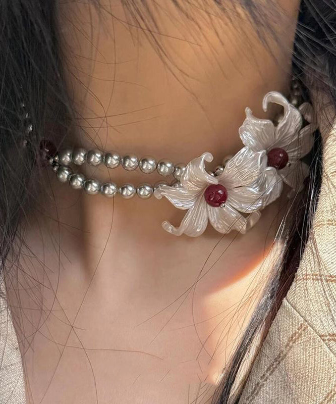Boutique Grey Copper Alloy Double-Layer Pearl Iris Gratuated Bead Necklace