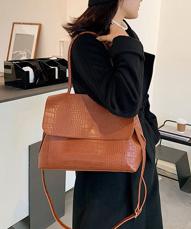Classy Brown Patchwork Faux Leather Messenger Bag