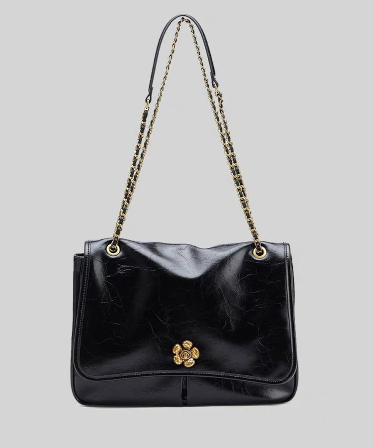 DIY Brown Floral Chain Linked Patchwork Faux Leather Satchel Handbag