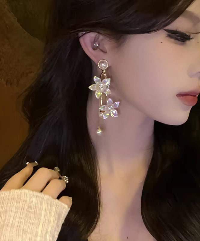 Fashion Gold Acrylic Alloy Zircon Pearl Floral Tassel Drop Earrings