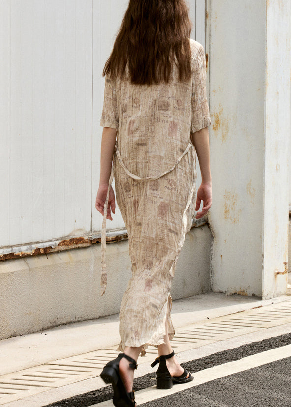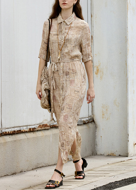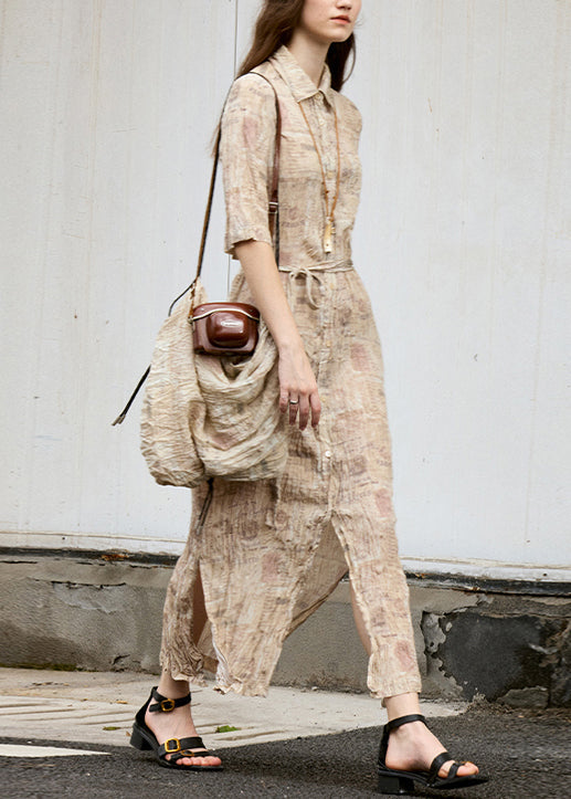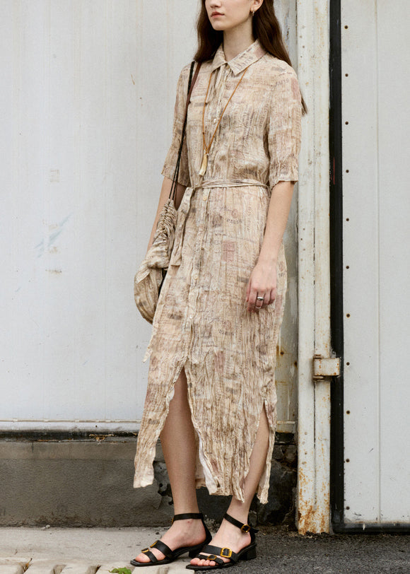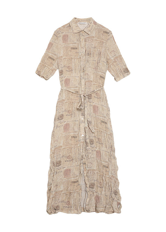 Handmade Peter Pan Collar Print Wrinkled Cotton Dresses Summer