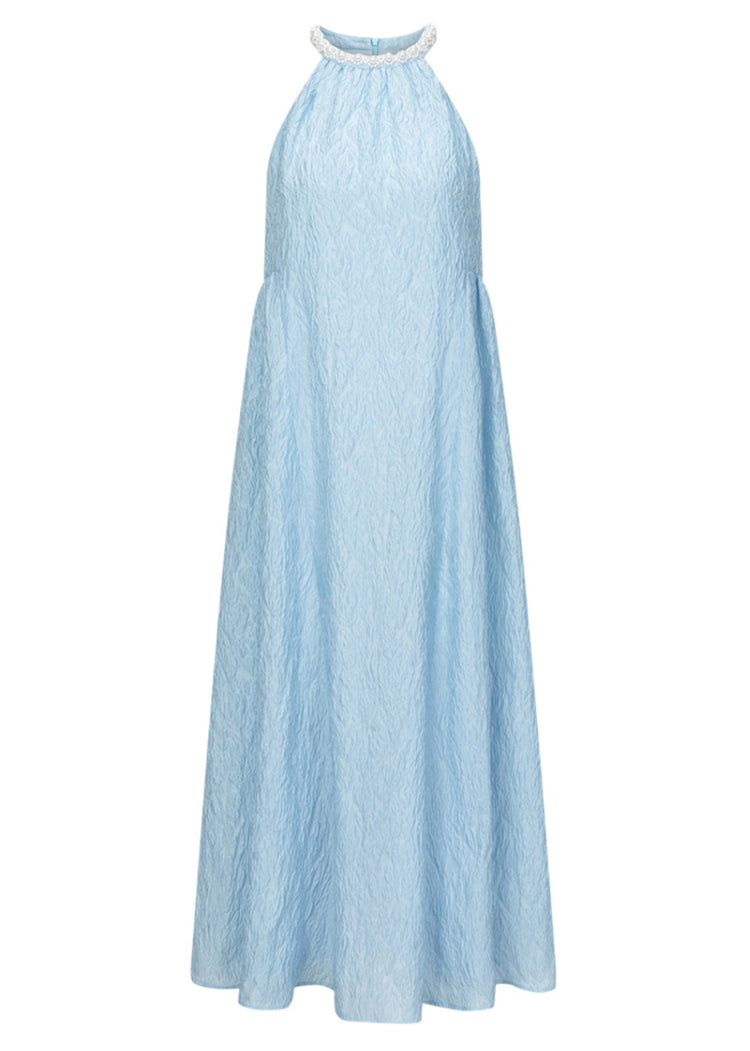 Jacquard Blue Halter Beading Maxi Dress Summer