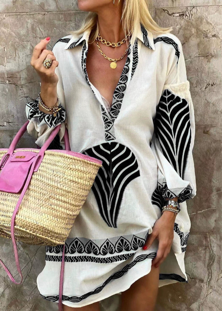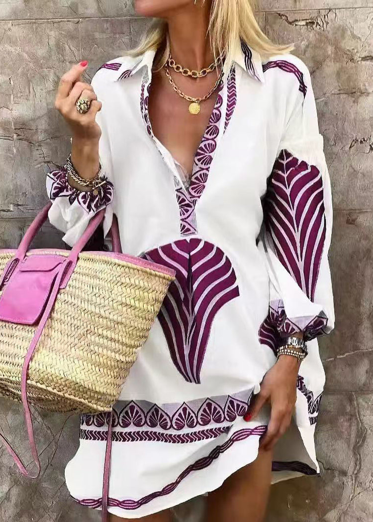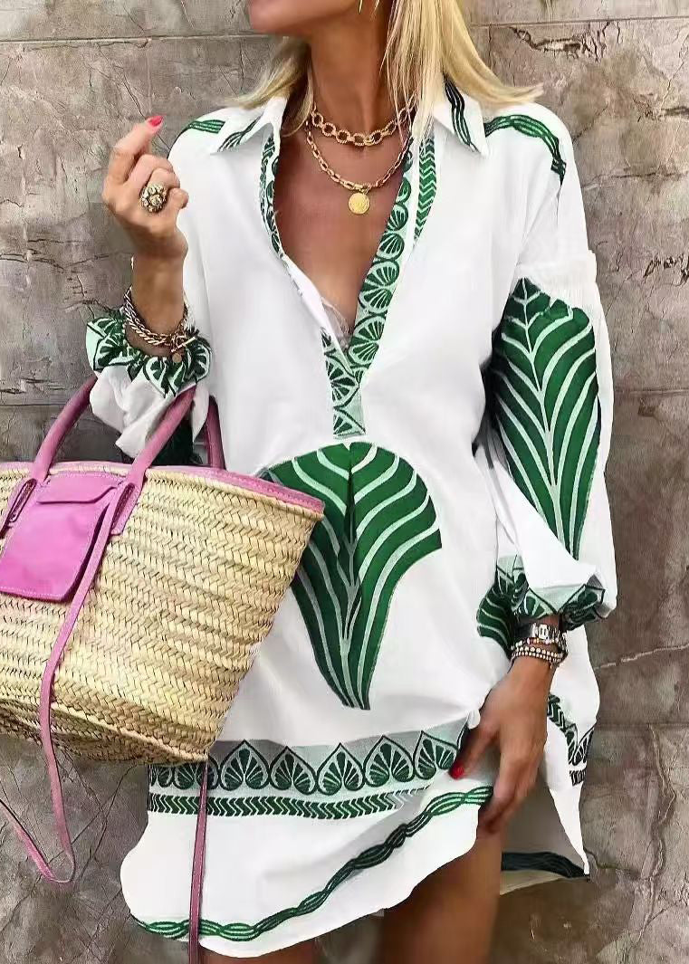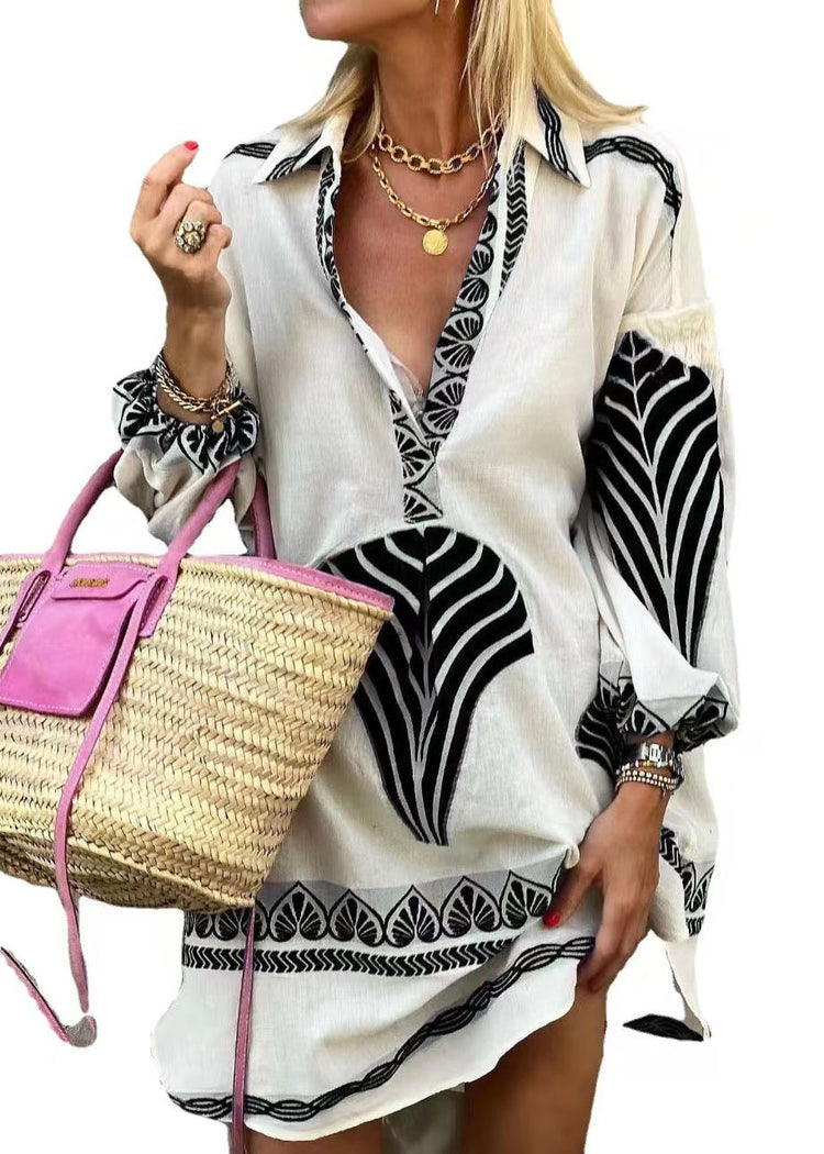 Loose Blue Peter Pan Collar Print Cotton Shirts Dress Spring