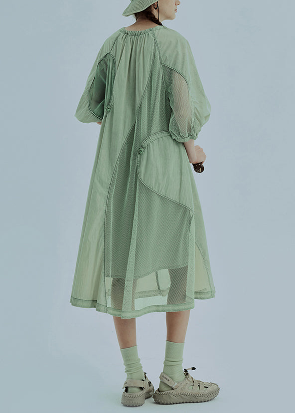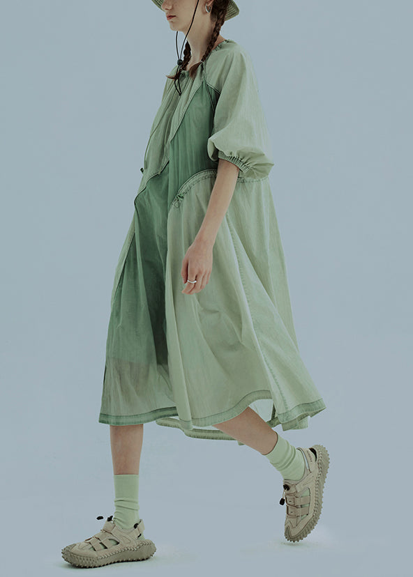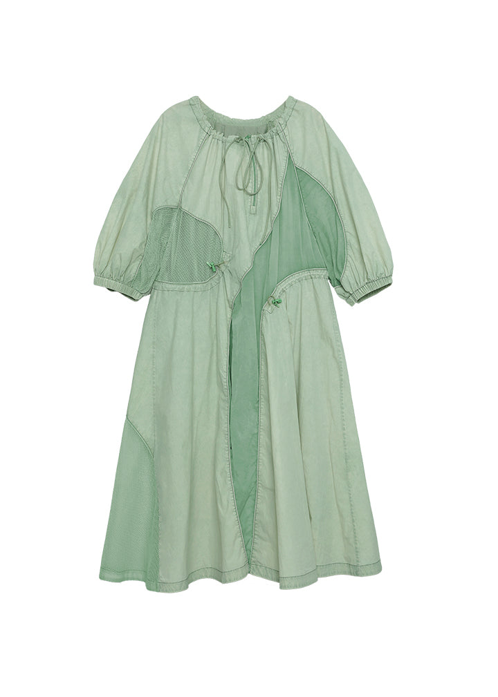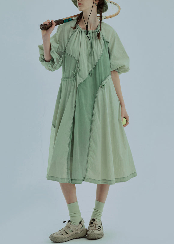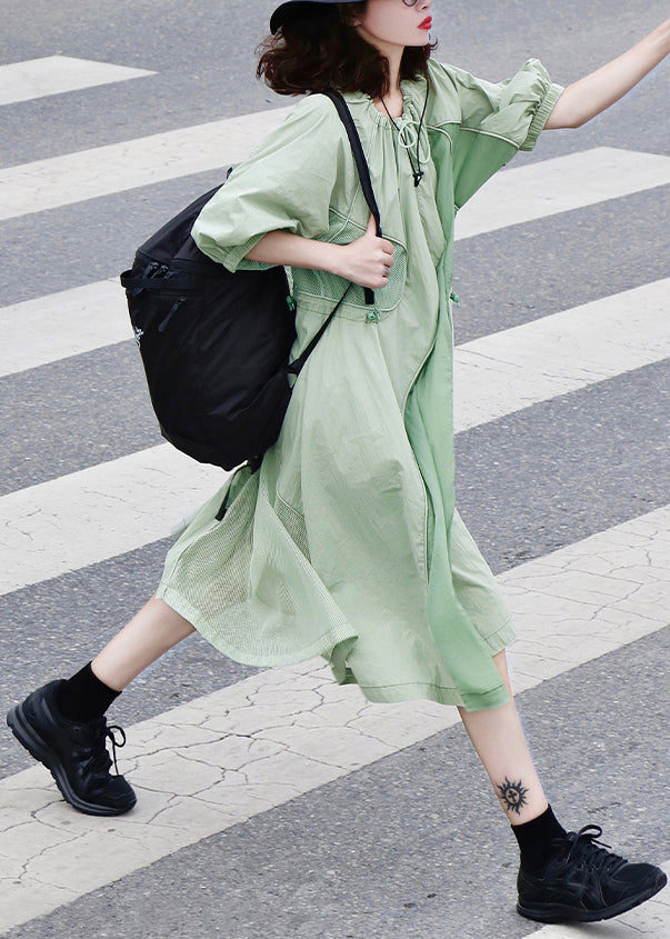 Modern Green Drawstring Wrinkled Patchwork Cotton Dresses Summer