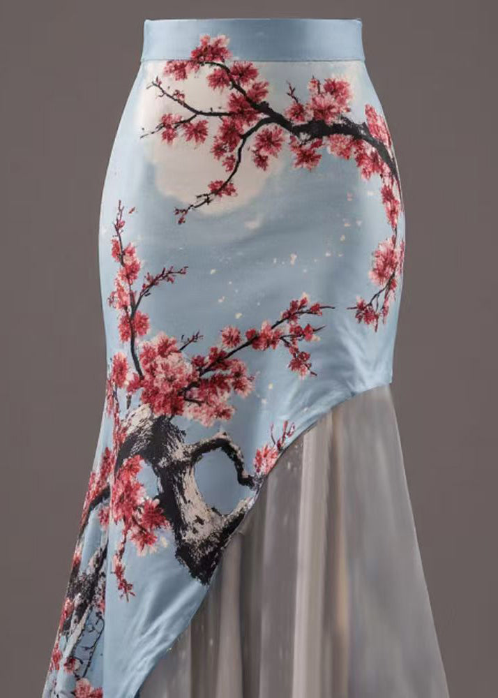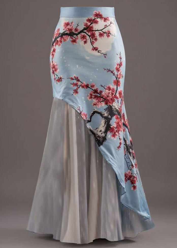 New Blue Asymmetrical Print Patchwork Skirts Summer