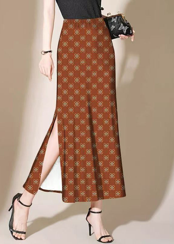 New Print Side Open Elastic Waist Cotton Skirt Summer