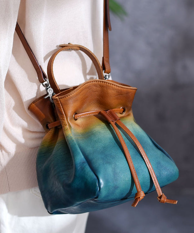 Original Blue Gradient Hand Painted Drawstring Crossbody Bag