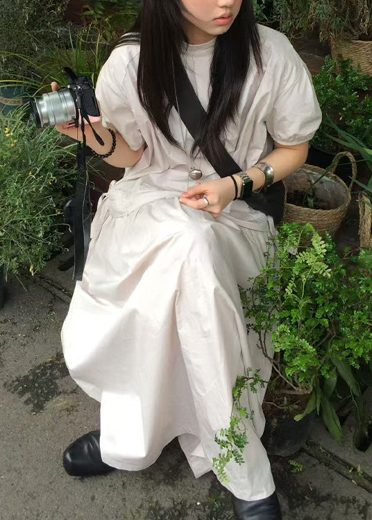 Plus Size Wrinkled Patchwork Drawstring Cotton Dress Summer