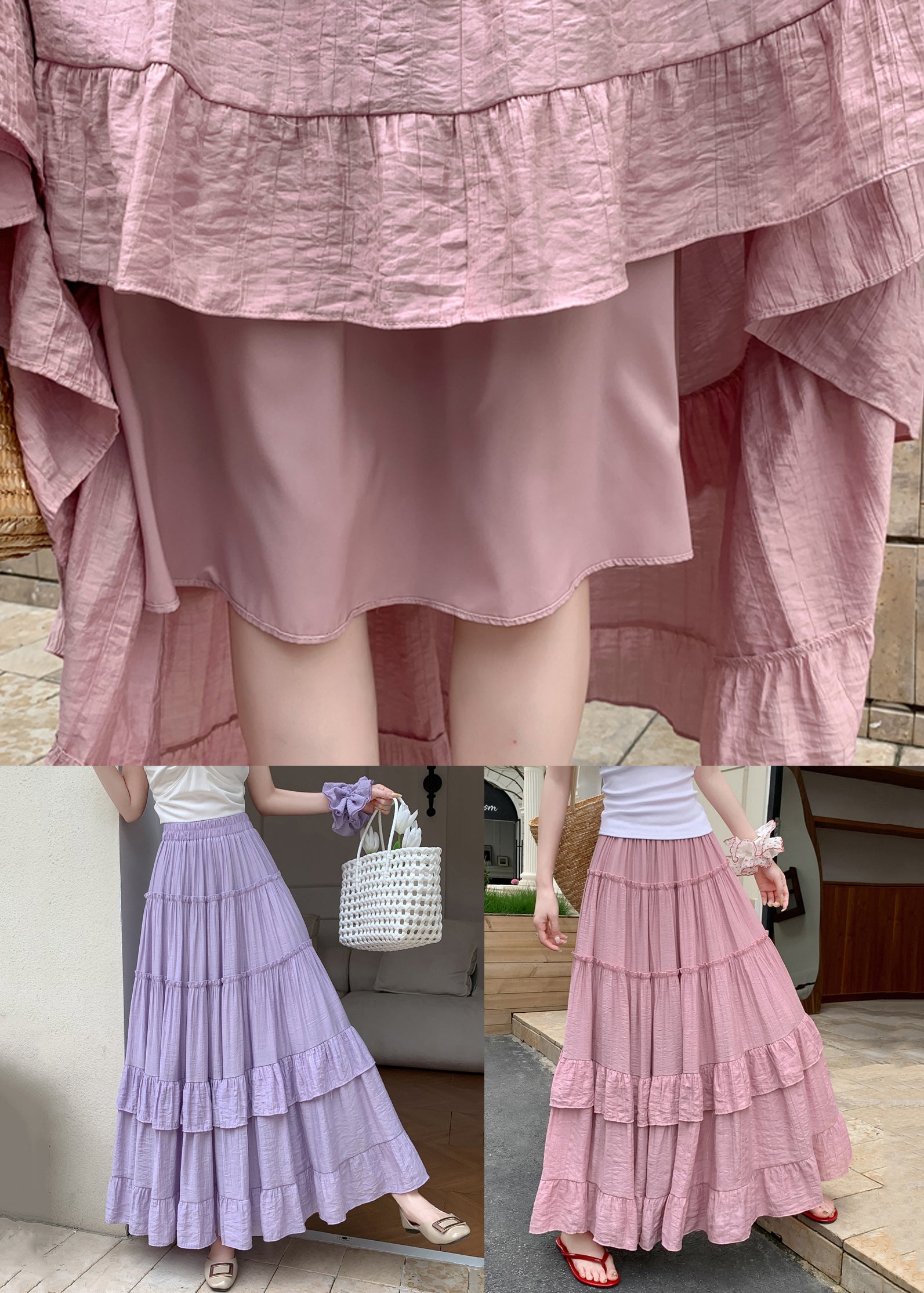 Purple Solid Patchwork Cotton Summer Maxi Skirts Ruffled