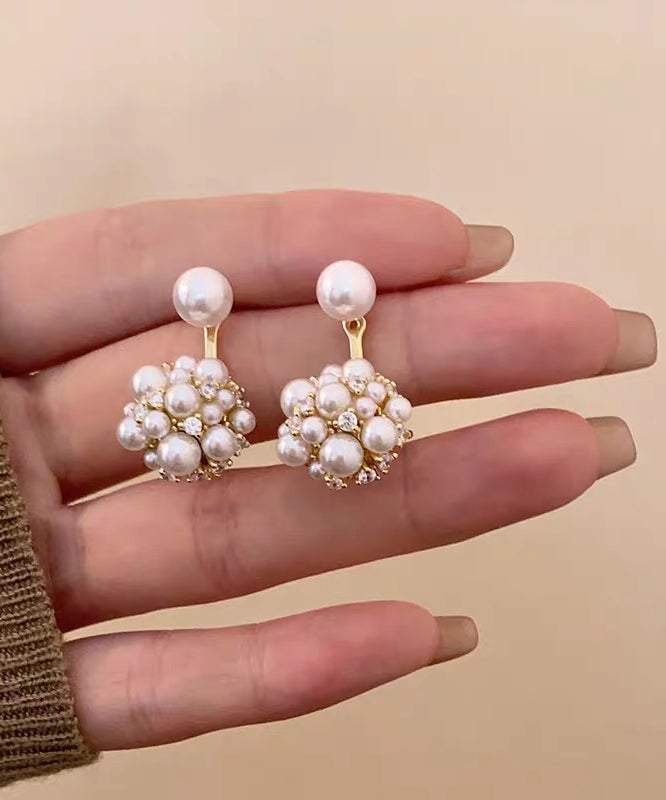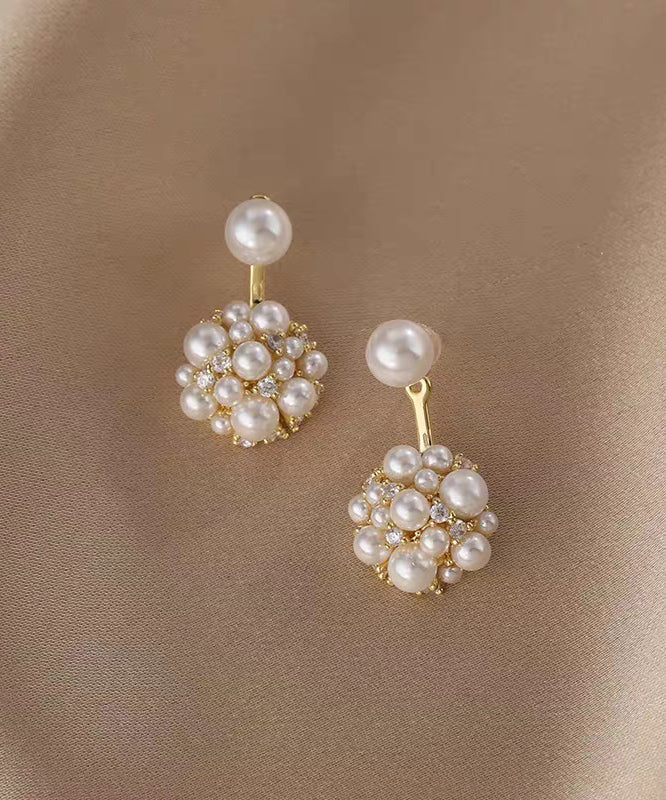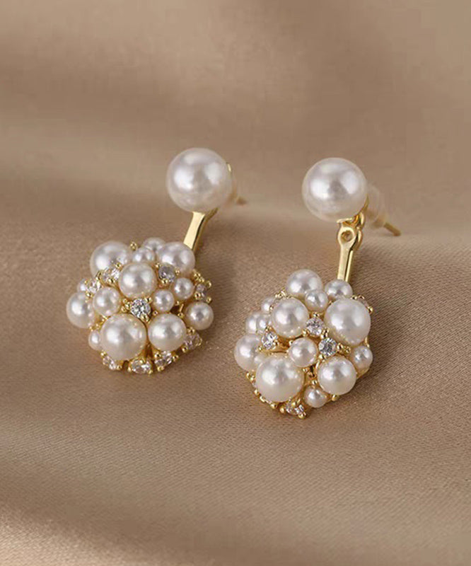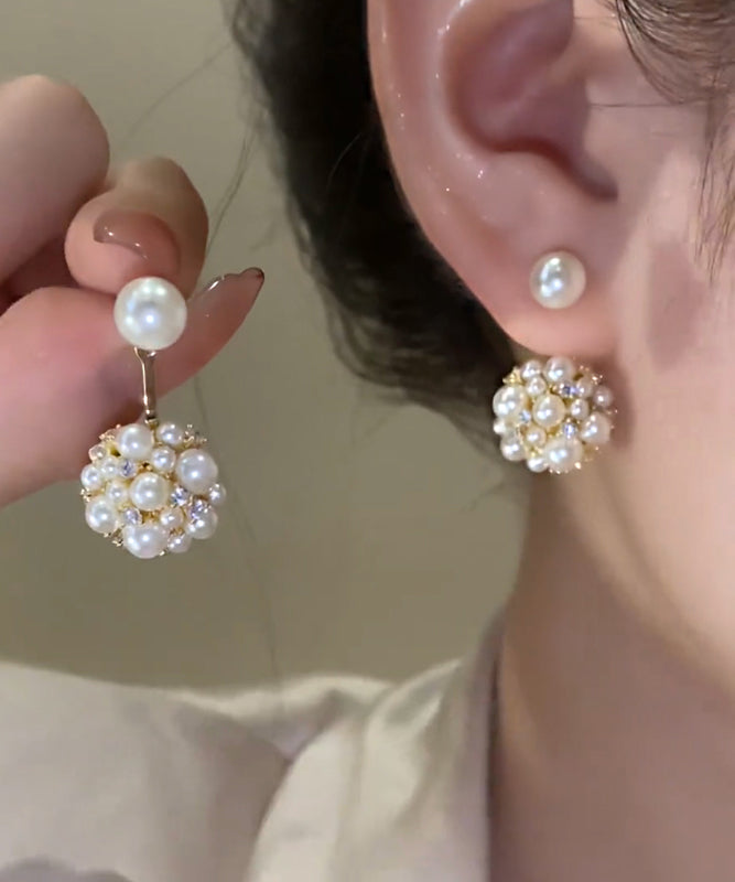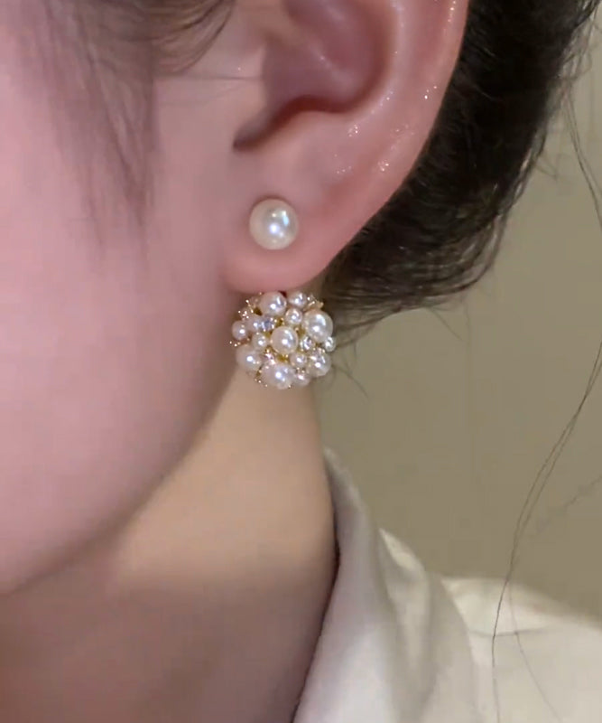 Stylish White Copper Overgild Zircon Pearl Stud Earrings