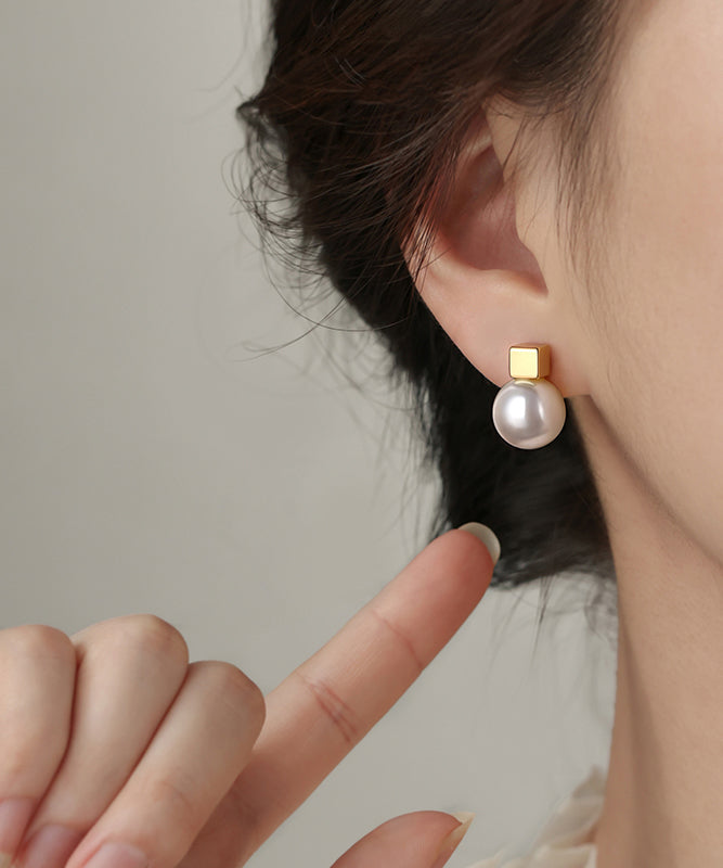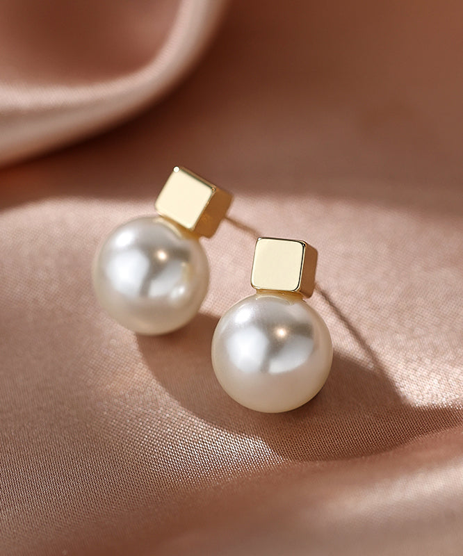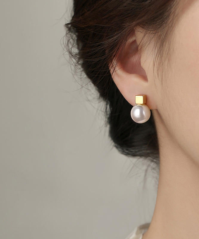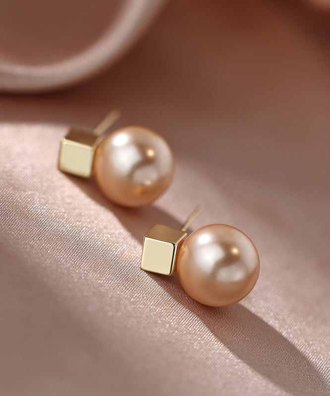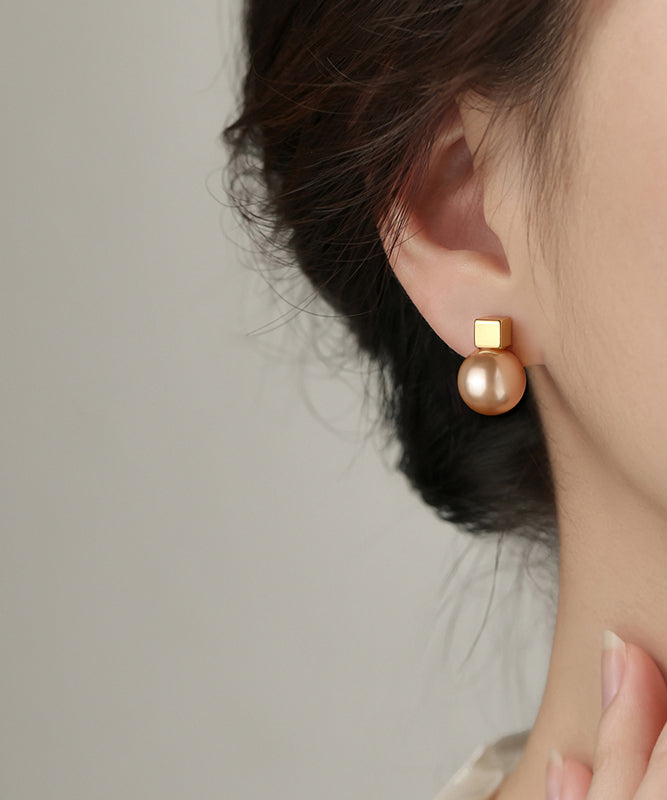 Women Champagne Copper Alloy Pearl Stud Earrings