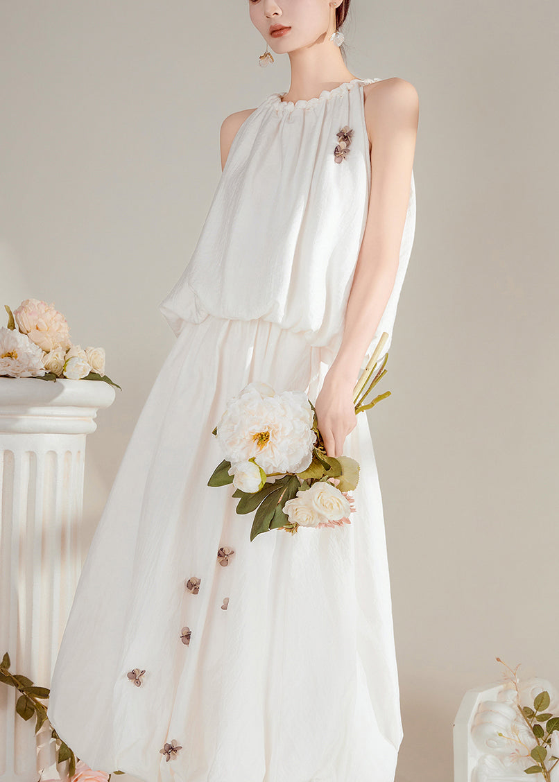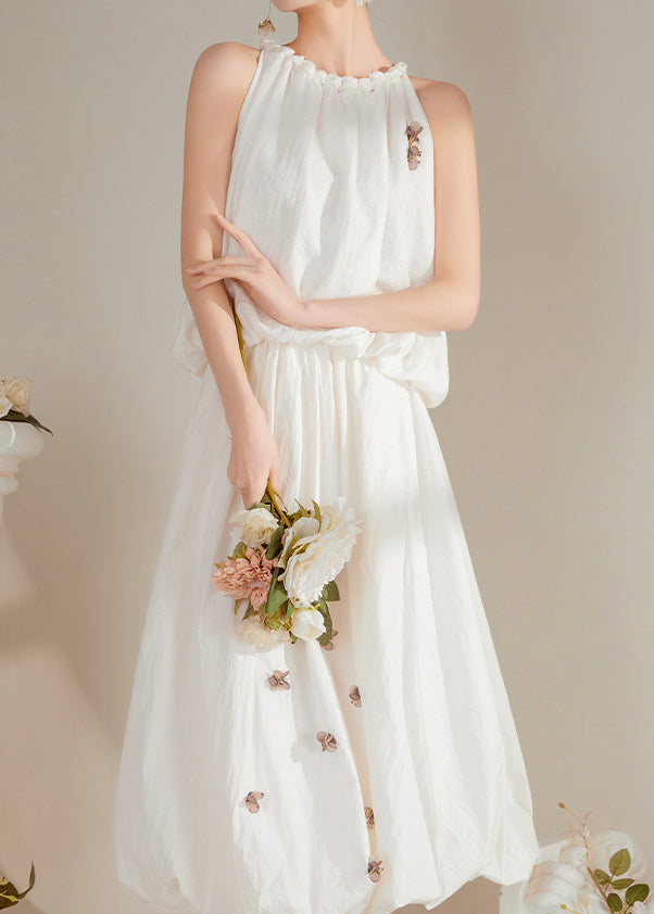 Beautiful White O-Neck Floral Top And Maxi Skirts Two Pieces Set Summer