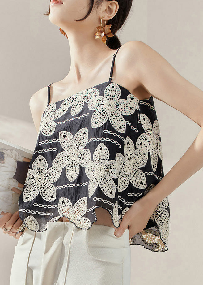 Casual Black Backless Embroideried Tanks Sleeveless