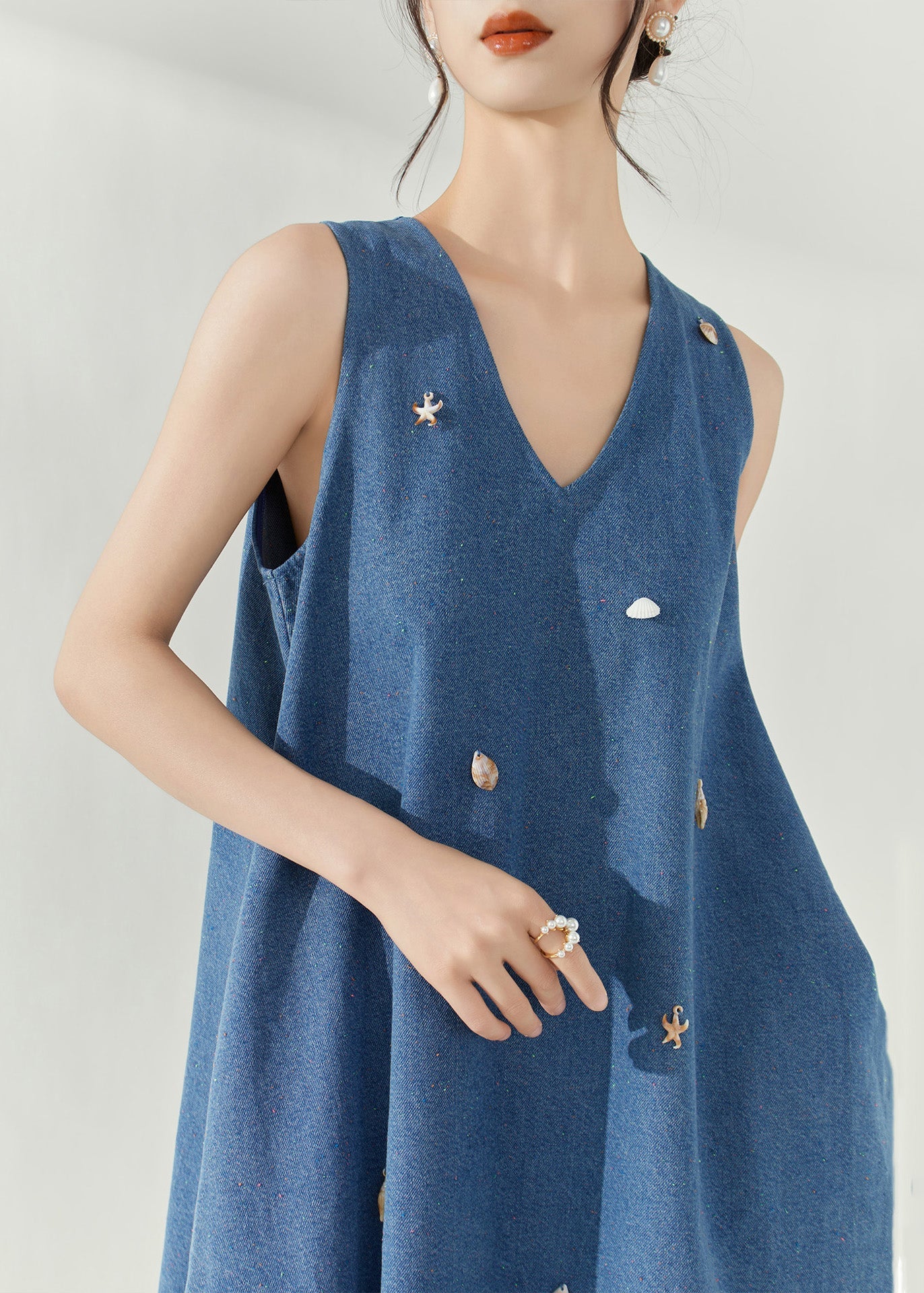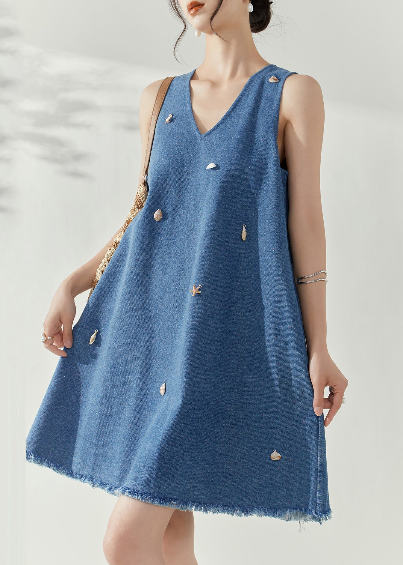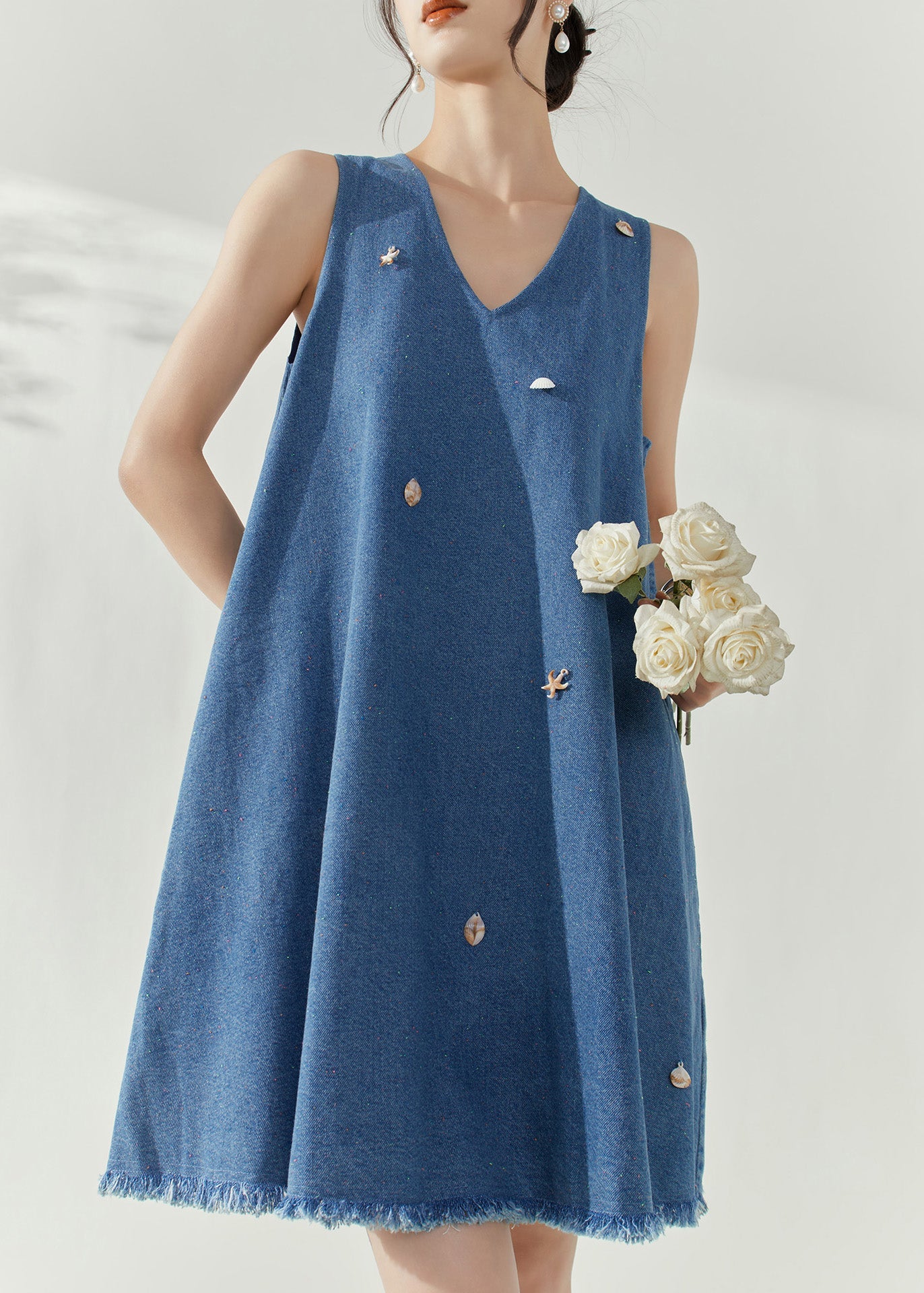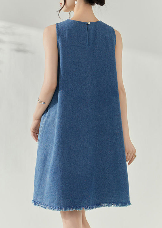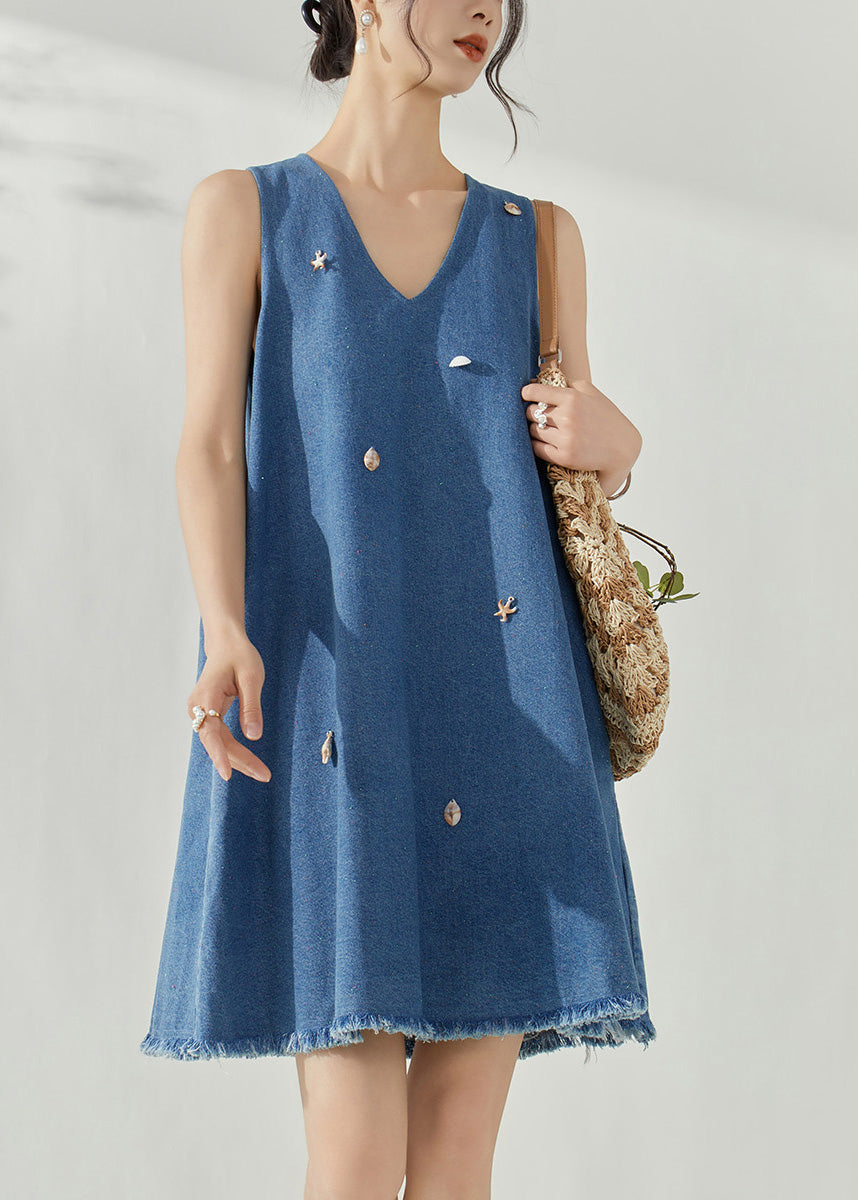 Casual Blue V Neck Holiday Denim Mid Dress Summer